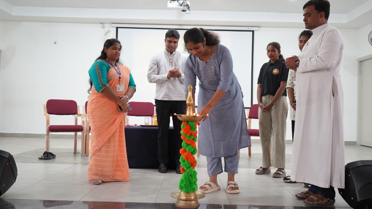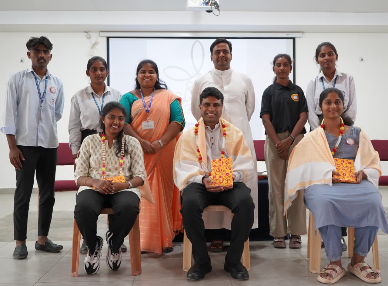 The programme was presided over by Rev. Fr. Vinod Paul, SJ, Principal of Loyola College, Manvi. The Chief Guest was Rev. Fr. Merwyn Loyd Fernandes, SJ, Director – KJES and State Advisor, AICUF Karnataka. The special invitees included Ms. Chandana P, Ms. Priyanka, and Ms. Pavitra.