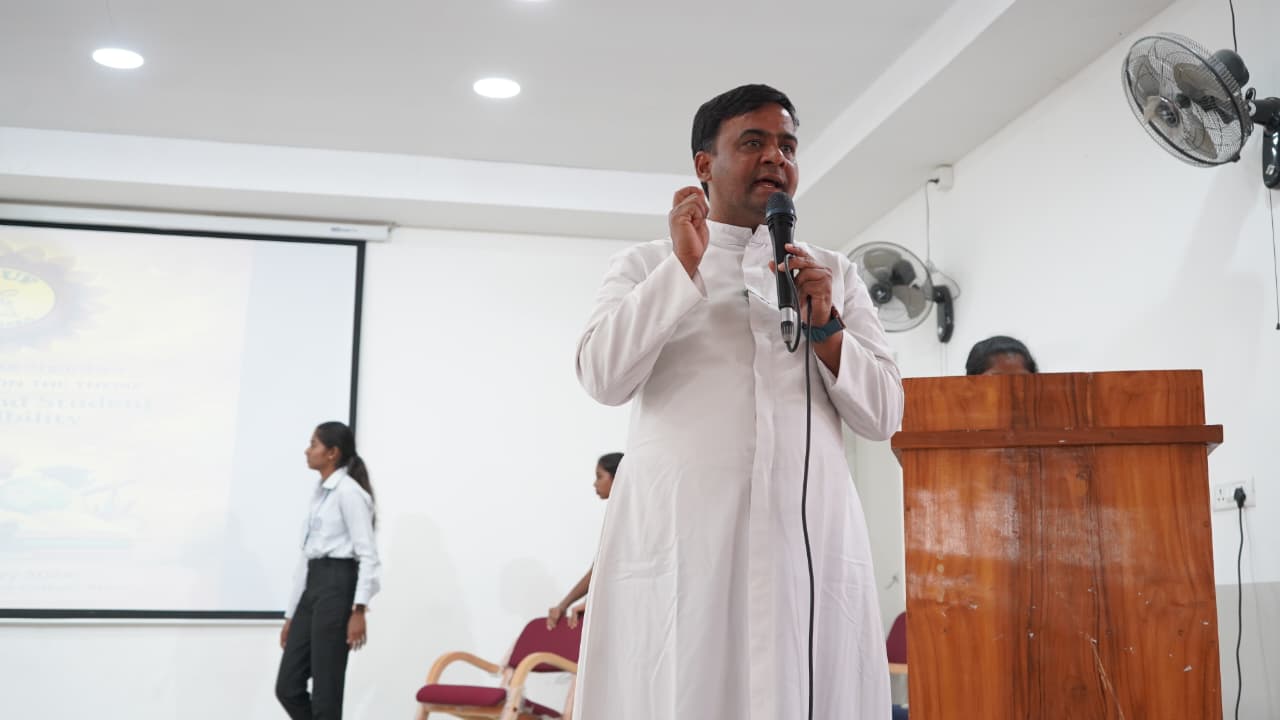 Rev. Fr. Merwyn Loyd Fernandes delivered an inspiring talk on “Education and Student Responsibilities.” He emphasized that education should not be limited to personal success but should lead to service, leadership, and social commitment.