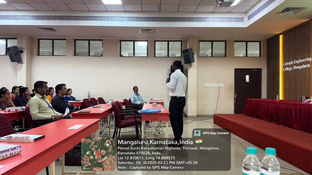 The Department of Intelligent Computing and Business Systems (ICBS), in association with the Research and Facilities Group, organized a workshop on “Patent Drafting Insights for Computer-Related Inventions” on 25th October 2025, St Joseph Engineering College, Mangaluru. The session aimed to provide faculty members with an in-depth understanding of the fundamentals and practical aspects of drafting patents, particularly for computer-based innovations.