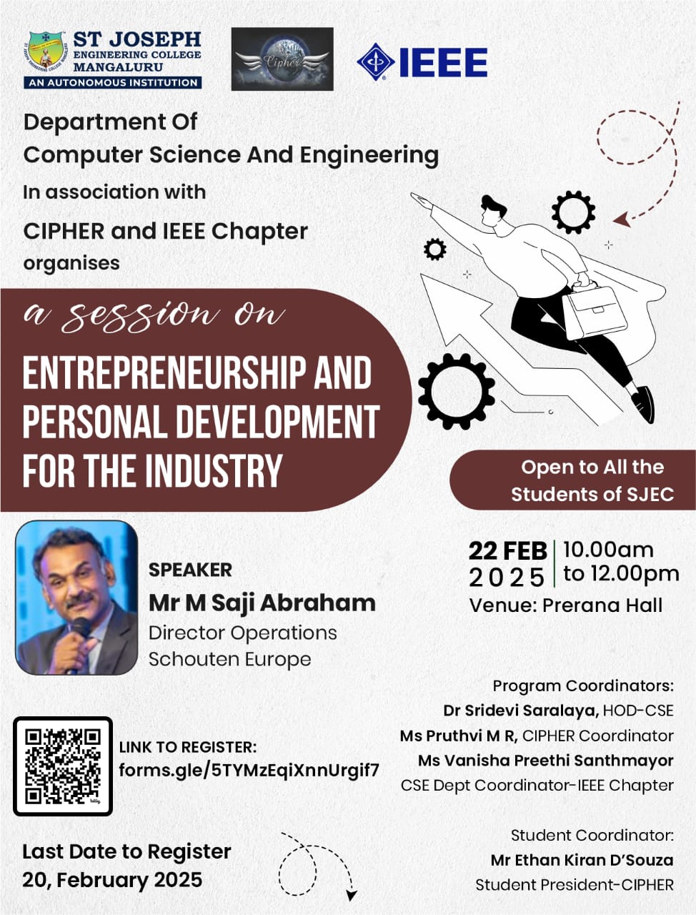 Department of Computer Science & Engineering in association with IE(I) Chapter and Computer Society of India (CSI) conducted a technical session on “Accelerating Tech Transformation in the AI Era” on 22 Feb 2025, for SJEC staff.  Mr M Saji Abraham, Director of Operations, Schouten Europe was the resource person. 24 faculty attended the technical session.