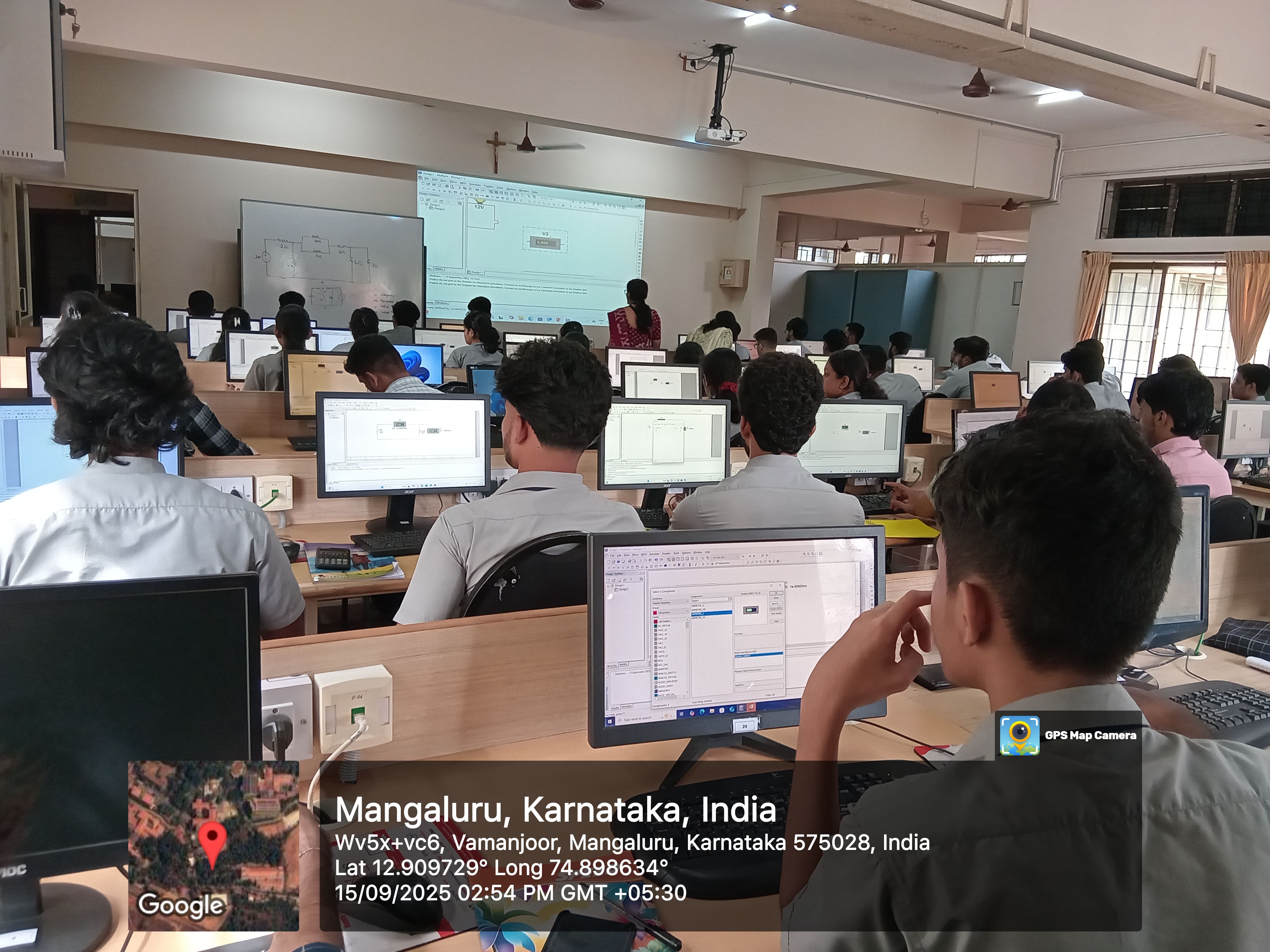 Desktop Computers(Intel i5,4 GB RAM,500 GB HDD,240 GB SSD, Windows 10), NI Multisim 14.2 Software, LCD Projector, Printer, LG-Lite ATE with Universal Load Boards |