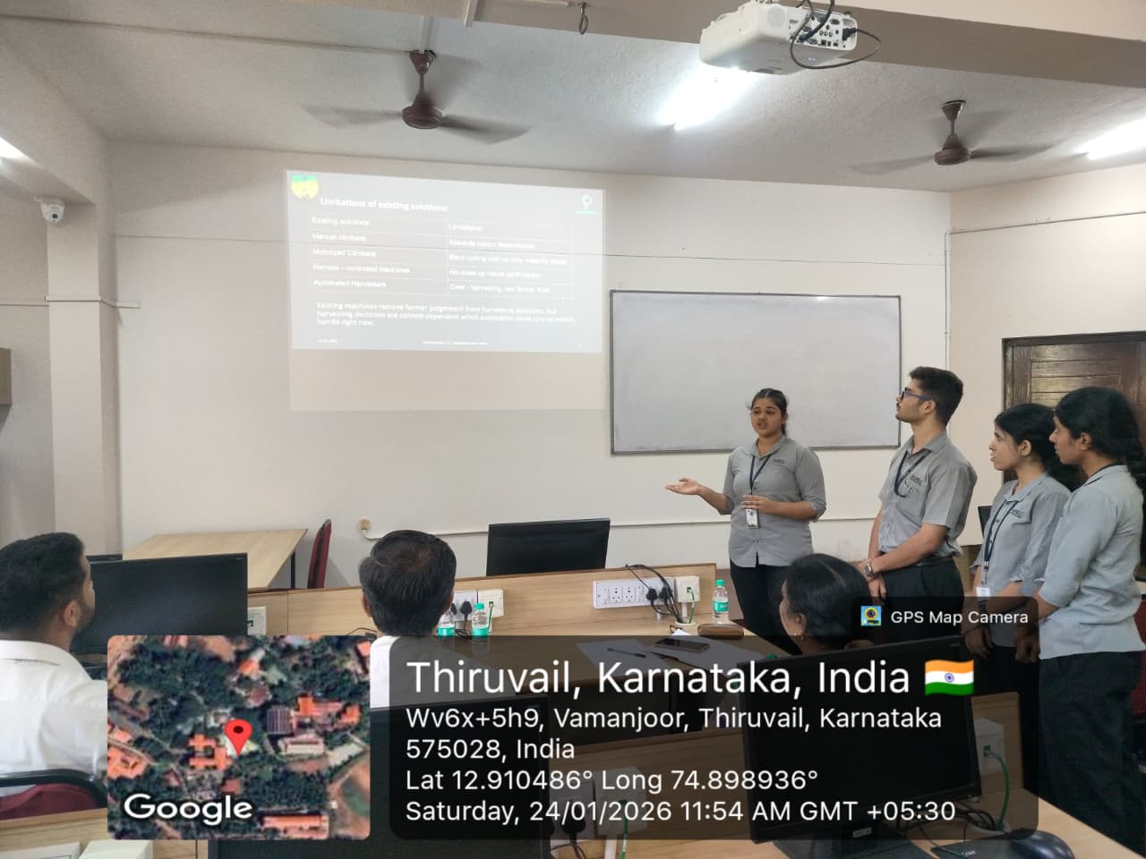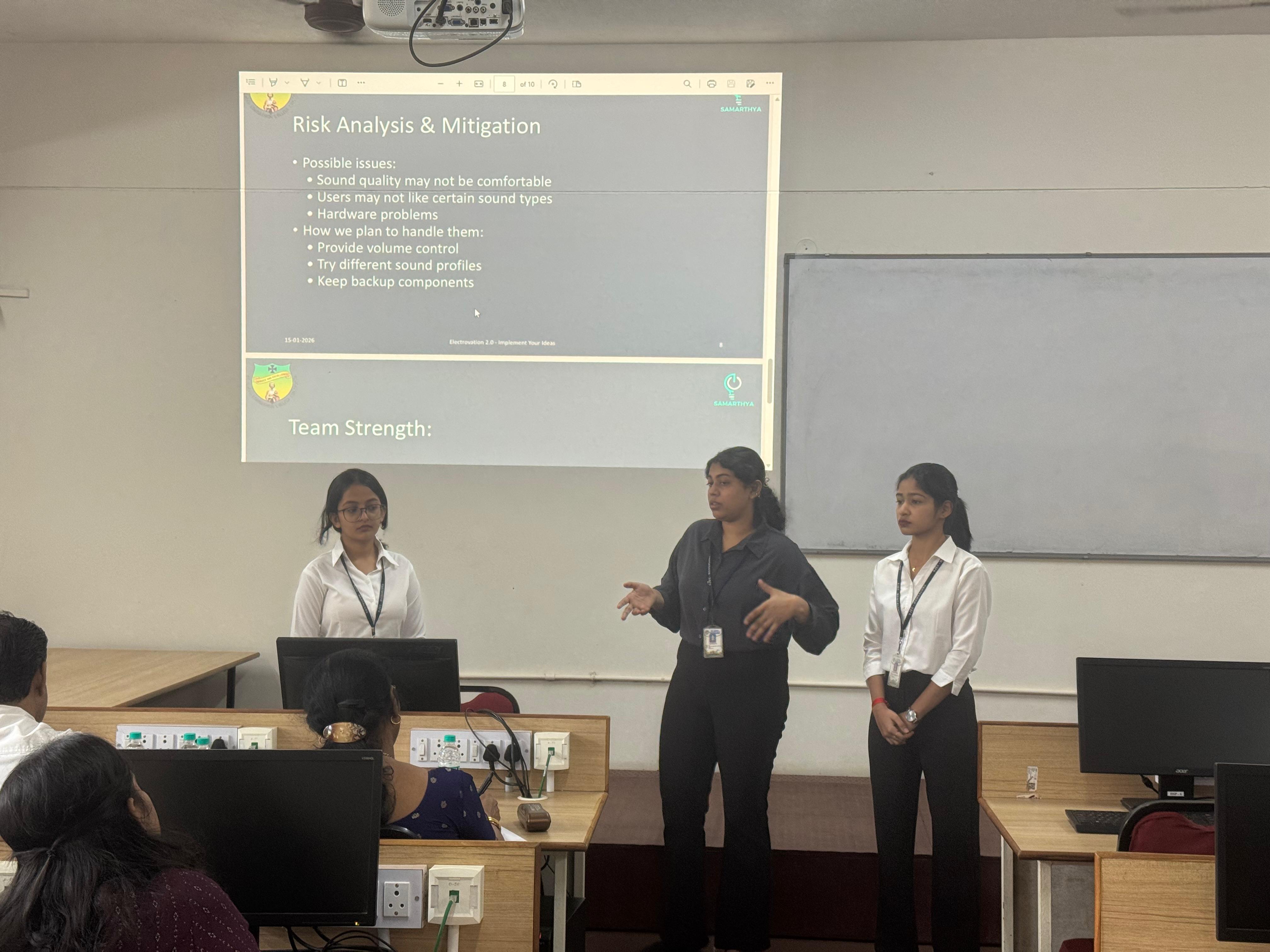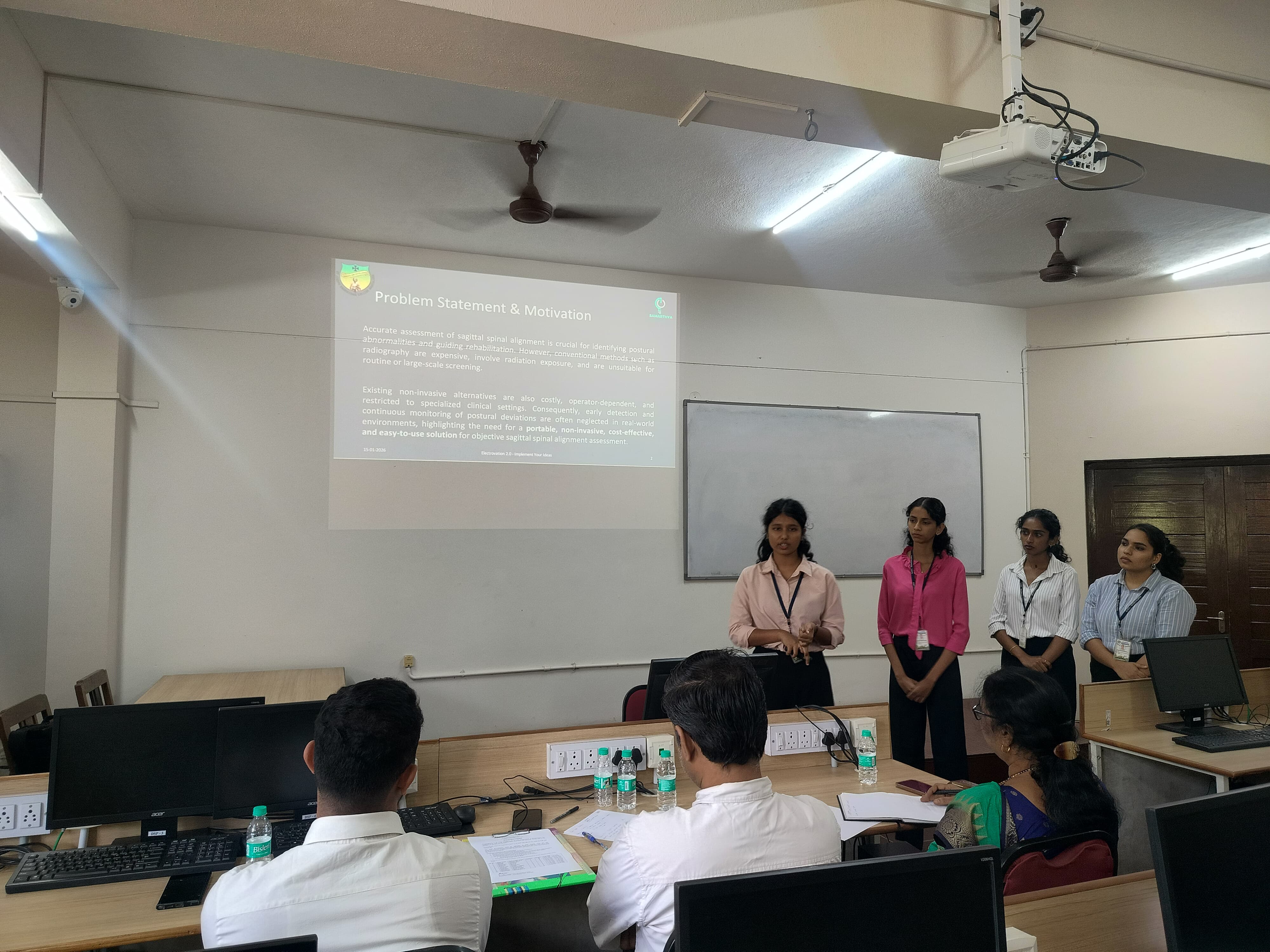 All participating teams presented innovative and industry-relevant project ideas, demonstrating strong technical expertise and creativity. The projects were evaluated by a distinguished panel comprising Dr. Dayakshini, Professor and Head of the Department of ECE; Mr. Vijay Ganesh C, Assistant Professor, Department of ECE; and Mr. Nandan B K, Assistant Professor, Department of Business Administration.