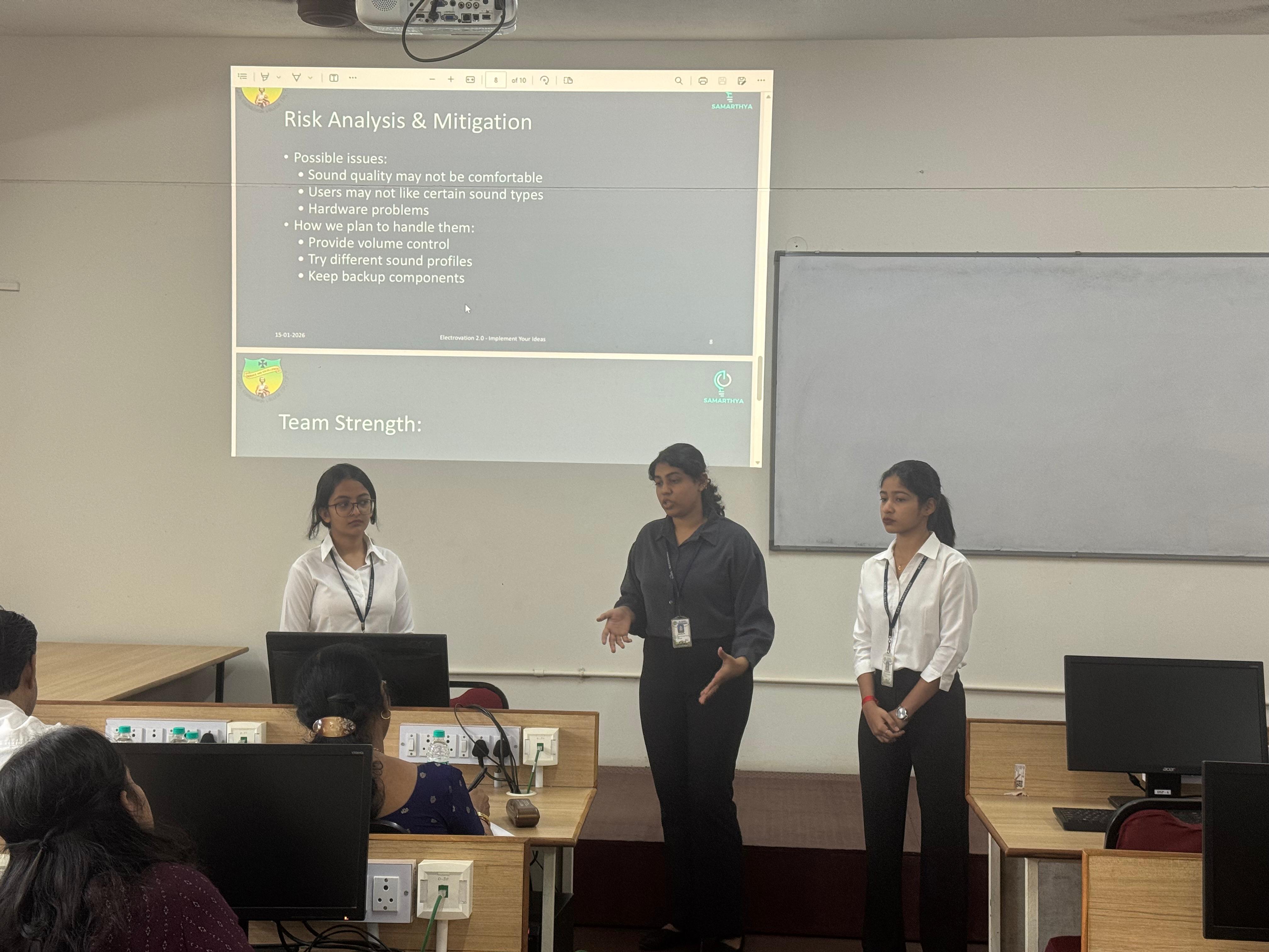 The Department of Electronics and Communication Engineering, in collaboration with the Samarthya Club, successfully organized Electrovation 2.0 on 24 January 2026. The event saw enthusiastic participation from 11 teams within the department, including 8 teams from the 6th semester and 3 teams from the 3rd semester.