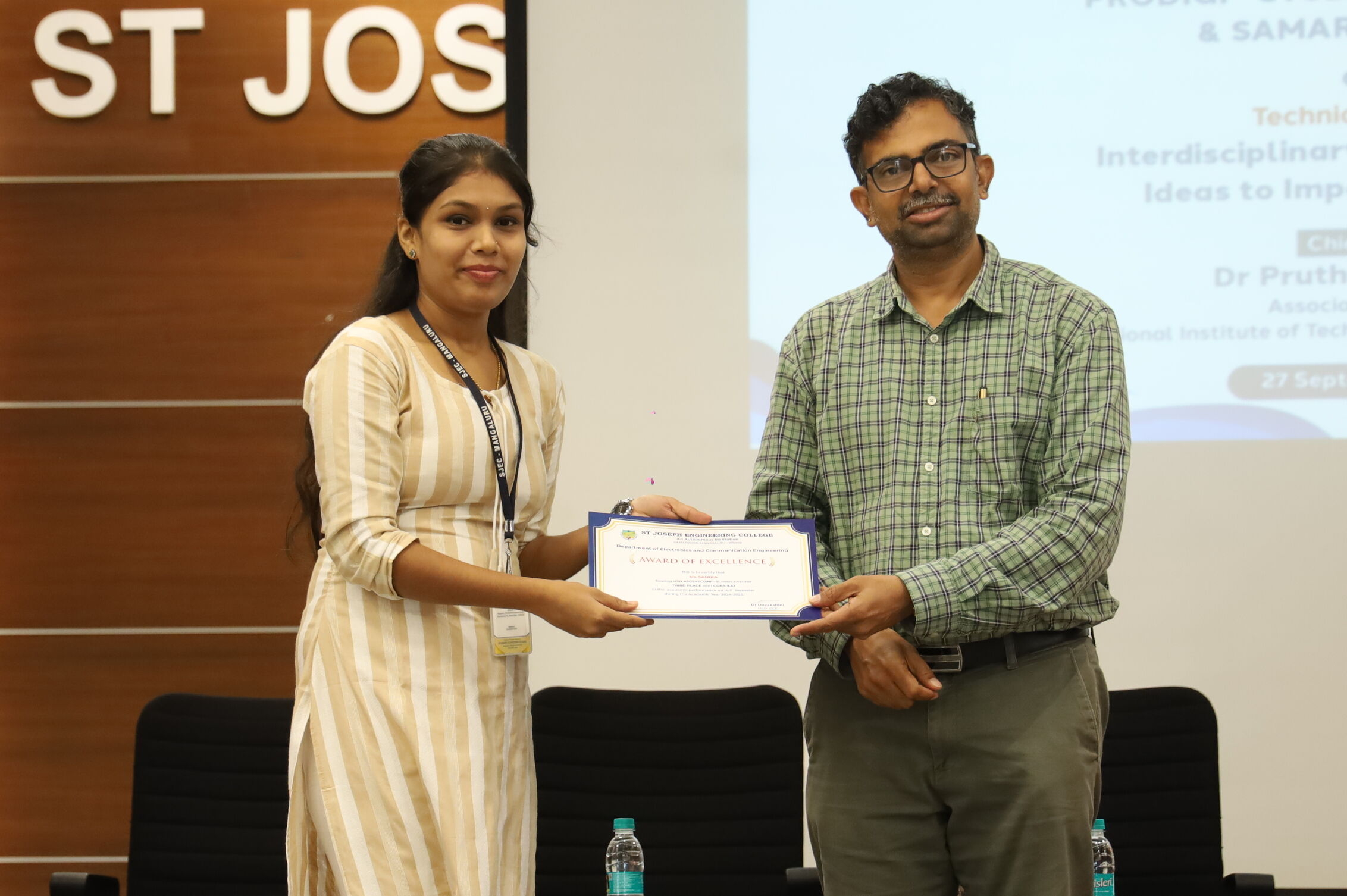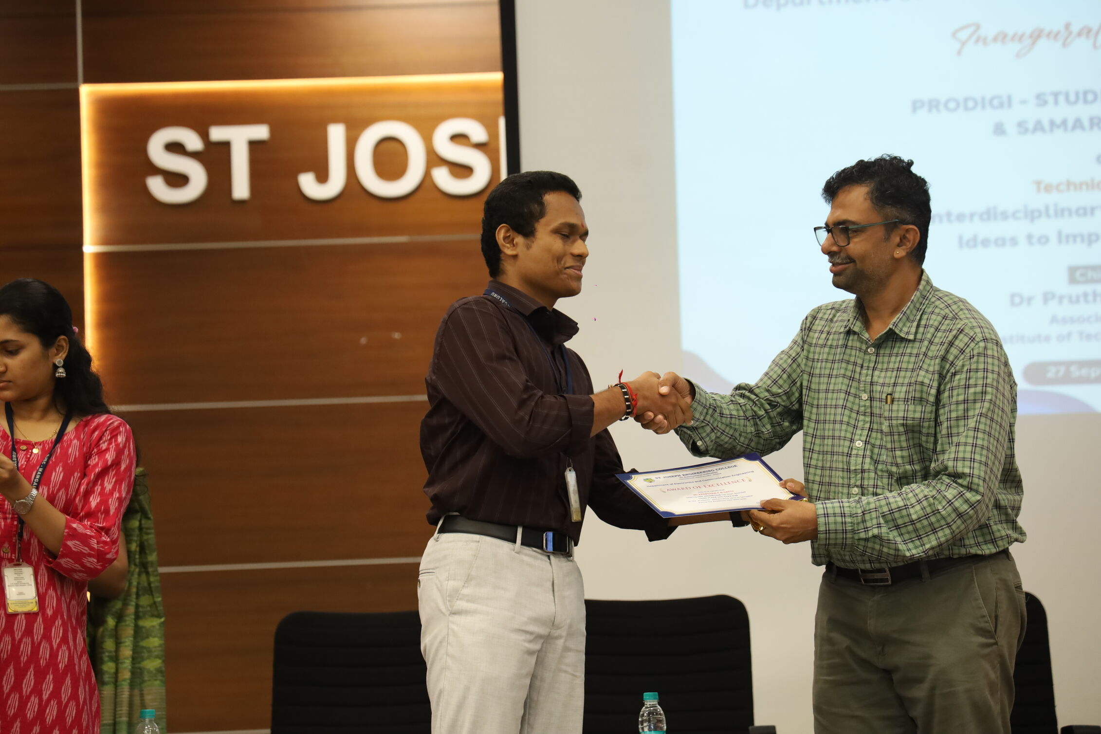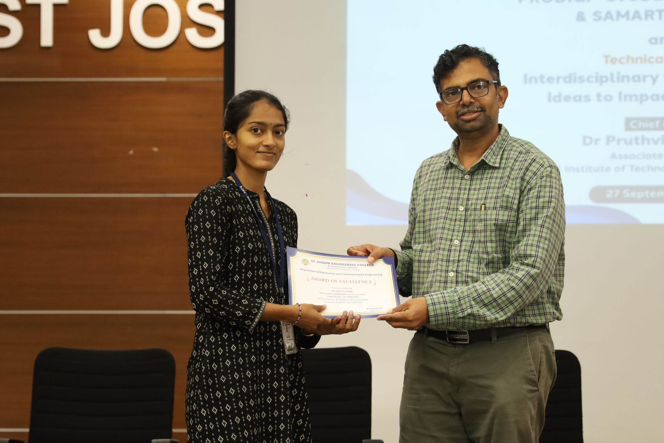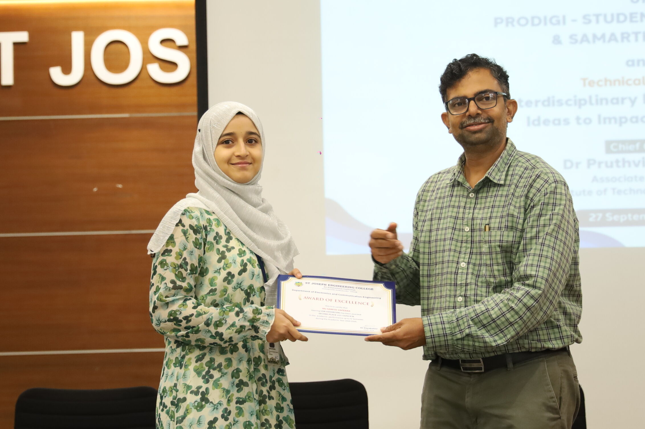 The Department of Electronics and Communication Engineering inaugurated the activities of the Prodigi Association and Samarthya Club for the academic year 2025-26 on September 27, 2025, at the Kalam Auditorium. The event, held in the presence of Dr Pruthviraj Umesh, Associate Professor, NITK, Suratkal, commenced at 11:00 AM. Dr Dayakshini, Head of the Department, welcomed the gathering and introduced the chief guest. Mr Adithya and Ms Prisha Kamalaksha Ail presented a brief report on the activities conducted during 2024-25. The new office bearers for the year 2025-26 were installed, and meritorious students were felicitated by the chief guest. Ms Ranjitha Shetty and Ms Lisha D S, Presidents of the respective associations, outlined the activities planned for the current academic year.