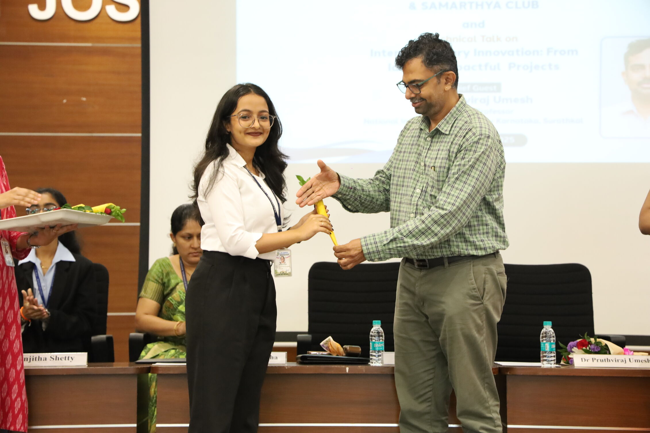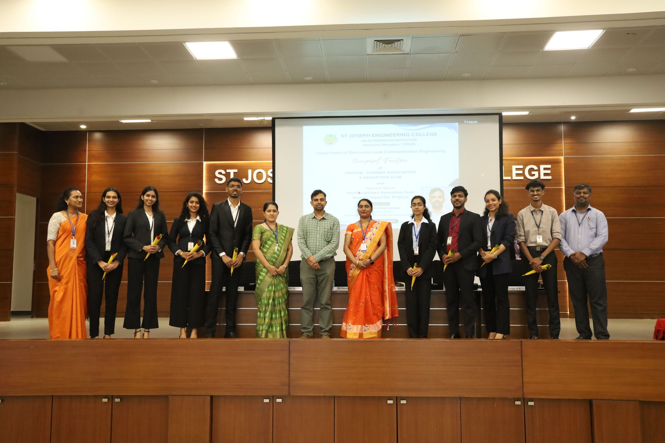 Following the inauguration, Dr Pruthviraj Umesh delivered a technical talk emphasizing the role of interdisciplinary research in creating innovative, real-world solutions. He illustrated how ideas can evolve into impactful, open-source projects and shared several student-led initiatives at NITK related to Water Resource Management. The talk inspired students to explore practical applications of their knowledge and align their academic goals with industry demands. The event was successfully coordinated by Ms Florence Nishmitha, Ms Vinitha Pasanha, Dr Aldrin Claytus Vaz, and Ms Madhavi Gatty, Assistant Professors in the Department of ECE.