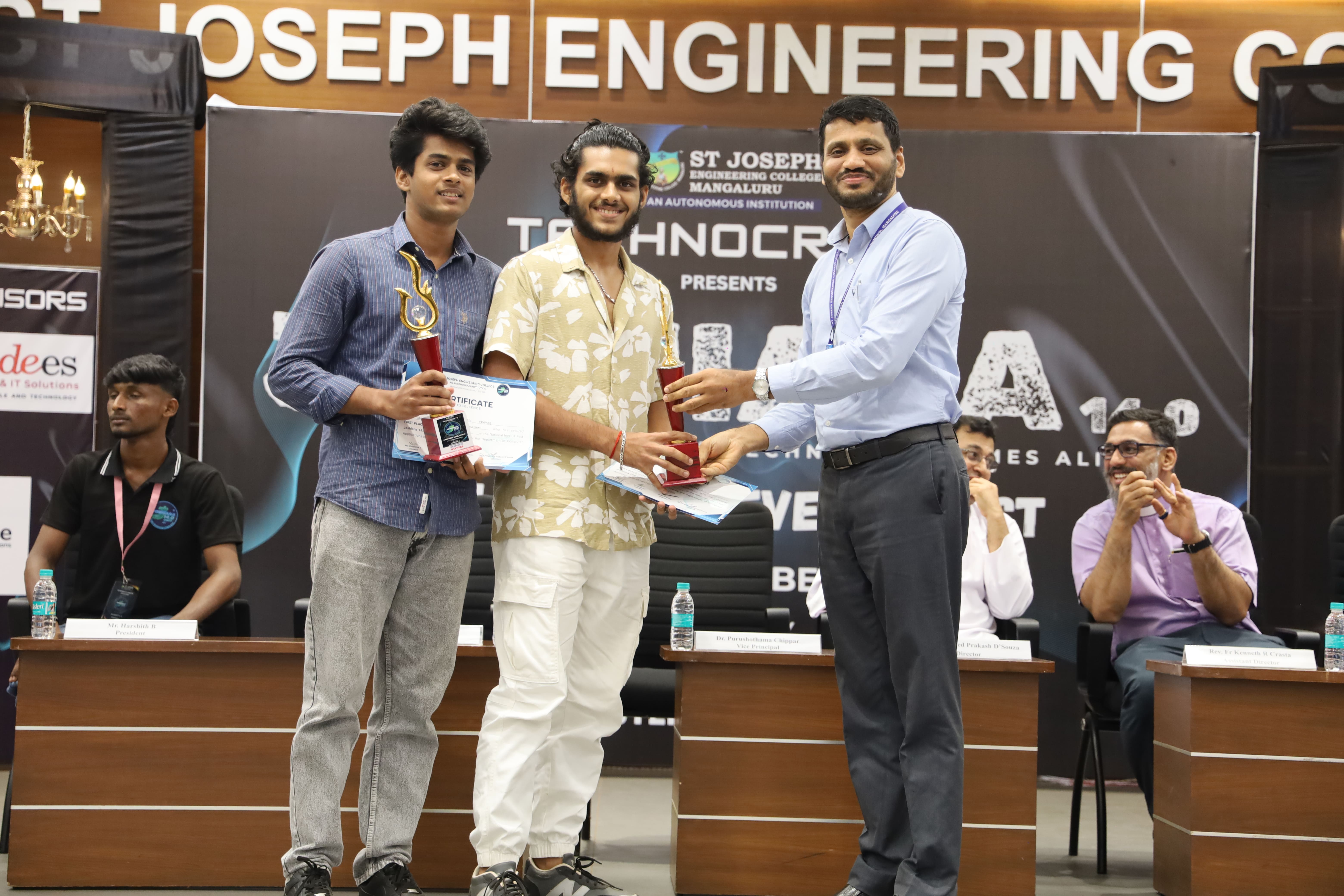 The fest was inaugurated on Friday, 21st November 2025, with the lighting of the lamp by the dignitaries. Mr. Dhyanaja Alva A, Software Engineer II at Microsoft, was the Chief Guest, while Rev. Fr. Wilfred Prakash D’Souza, Director – SJEC, presided over the function. Rev. Fr. Kenneth Rayner Crasta, Assistant Director – SJEC, and Dr. Rio D’Souza, Principal – SJEC, were the Guests of Honour. Other dignitaries included Dr. Hareesh B, HOD – MCA; Ms. Nishmitha J, Convener; Mr. Harshith B, President of TechnoCrats; and Ms. Sannidhi Shetty, Secretary of TechnoCrats.