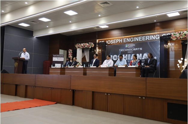 Welcoming the gathering, Dr. Hareesh B highlighted the objectives of the fest. Addressing the students, Dr. Rio D’Souza emphasized the importance of innovation, industry-relevant skills, and emerging technologies such as Artificial Intelligence. The Chief Guest, Mr. Dhyanaja Alva A, encouraged students to remain curious, consistent, and value academic and laboratory work as foundations for professional growth. Rev. Fr. Wilfred Prakash D’Souza noted that platforms like Joshiana enable students to test their skills and showcase talent beyond classrooms.