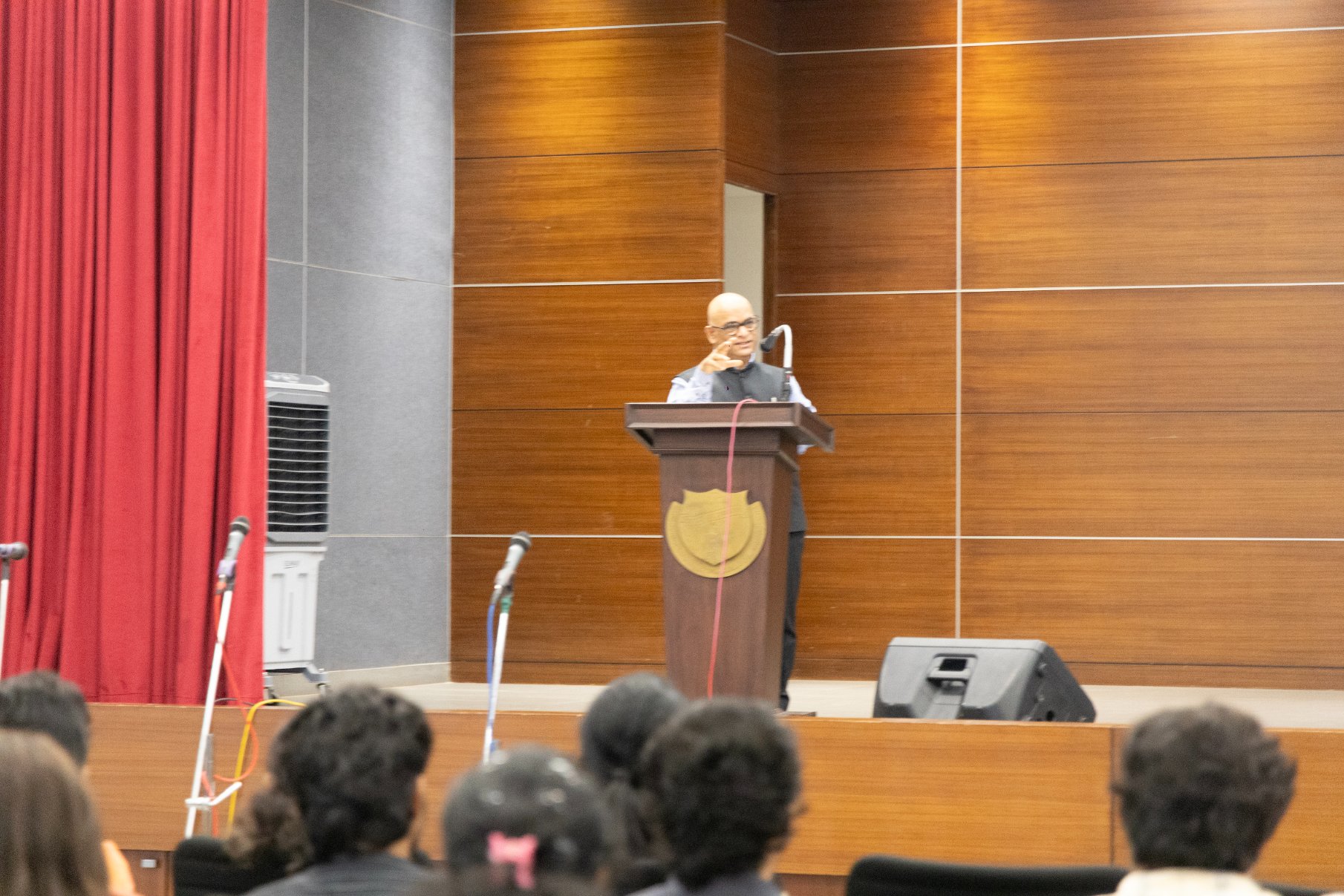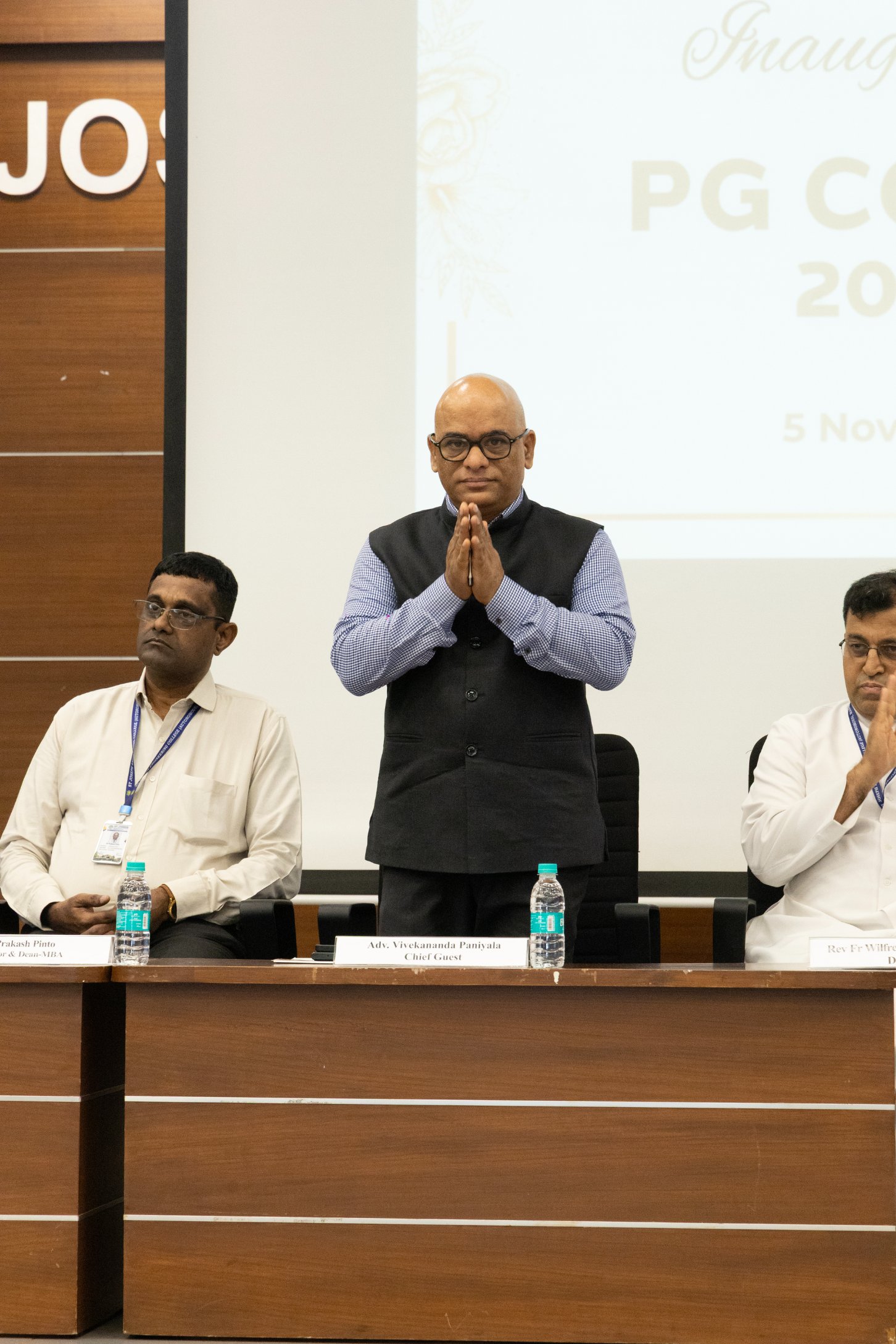 Adv. Vivekananda Paniyala, in his inaugural speech inspired the gathering by sharing his experiences, highlighting that management lessons begin at home and the institution itself is a model for future managers. Through his experience, he noted that successful corporate leaders have three things in common, those are justice, clarity, and commitment, and urged students to learn humbly from their teachers while exploring life beyond academics. He also encouraged legal awareness among MBA and MCA students, suggesting a short-term courses on IPR, confidentiality, POSH, and cyber defamation.