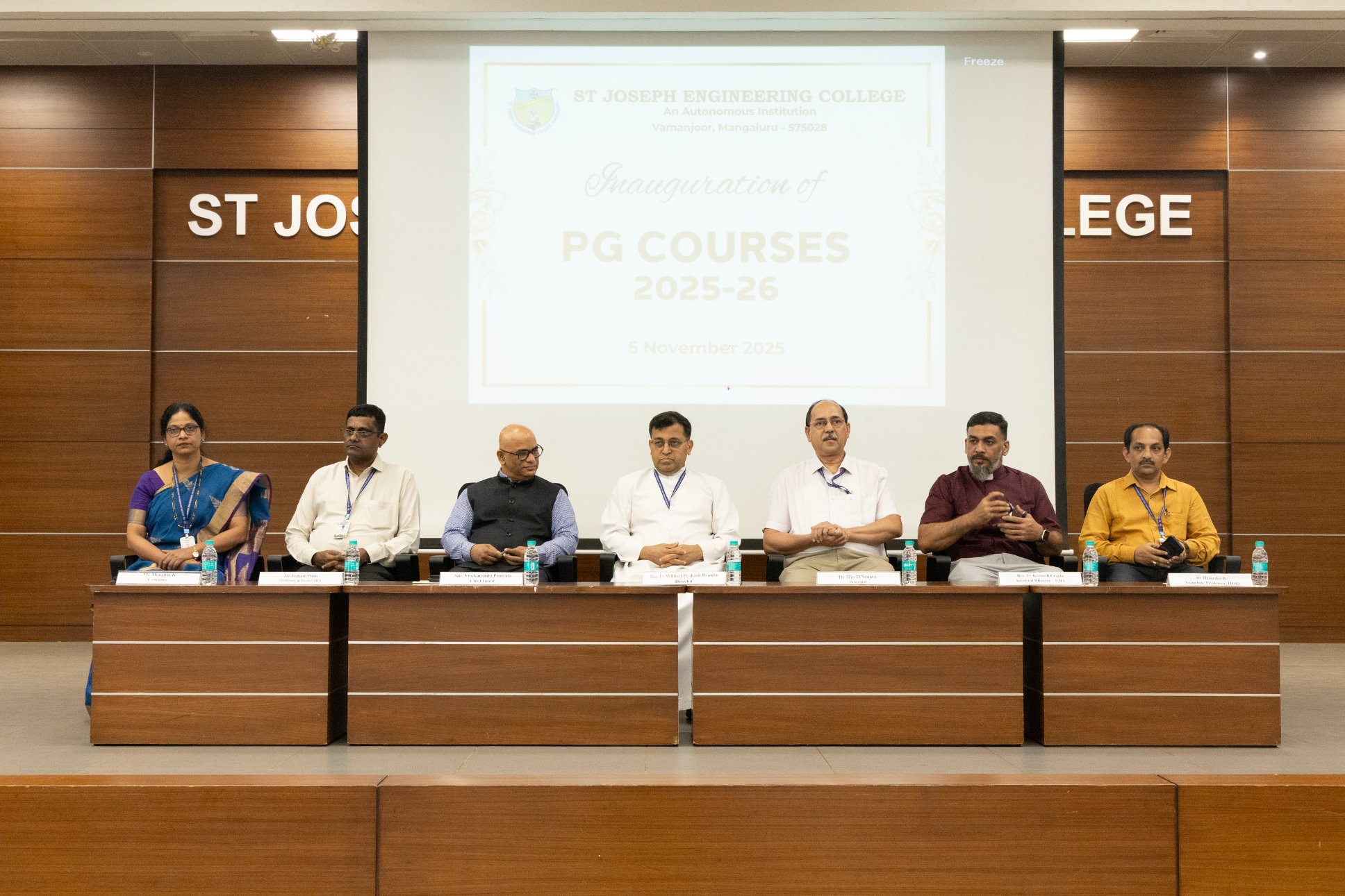 St Joseph Engineering College (SJEC), Mangaluru, an Autonomous Institution, inaugurated its PG Courses for the academic year 2025-26 on Wednesday, 5th November 2025 at 9:30 a.m. in Kalam Auditorium, Academic Block II.
