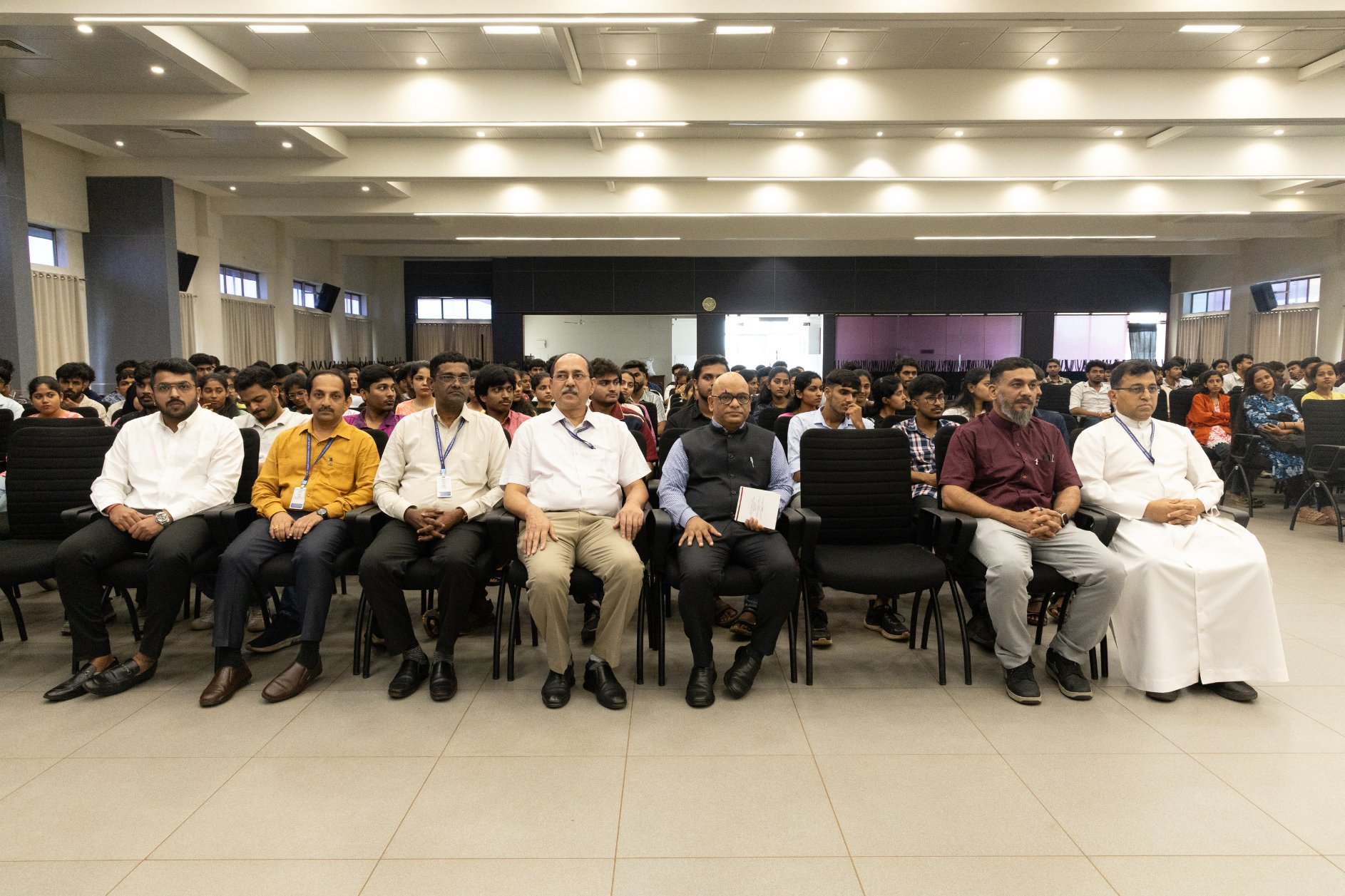 Dr Rio D'Souza, Principal, SJEC, addressed the gathering and welcomed all the first-year students. He emphasized the need for integrity and humility among students, reminding them to let teachers and the Almighty guide them toward wisdom and truth. He highlighted St. Joseph the Worker, the foster father of Jesus and a carpenter, as the ideal patron for an engineering college and urged PG students to be role models for others.