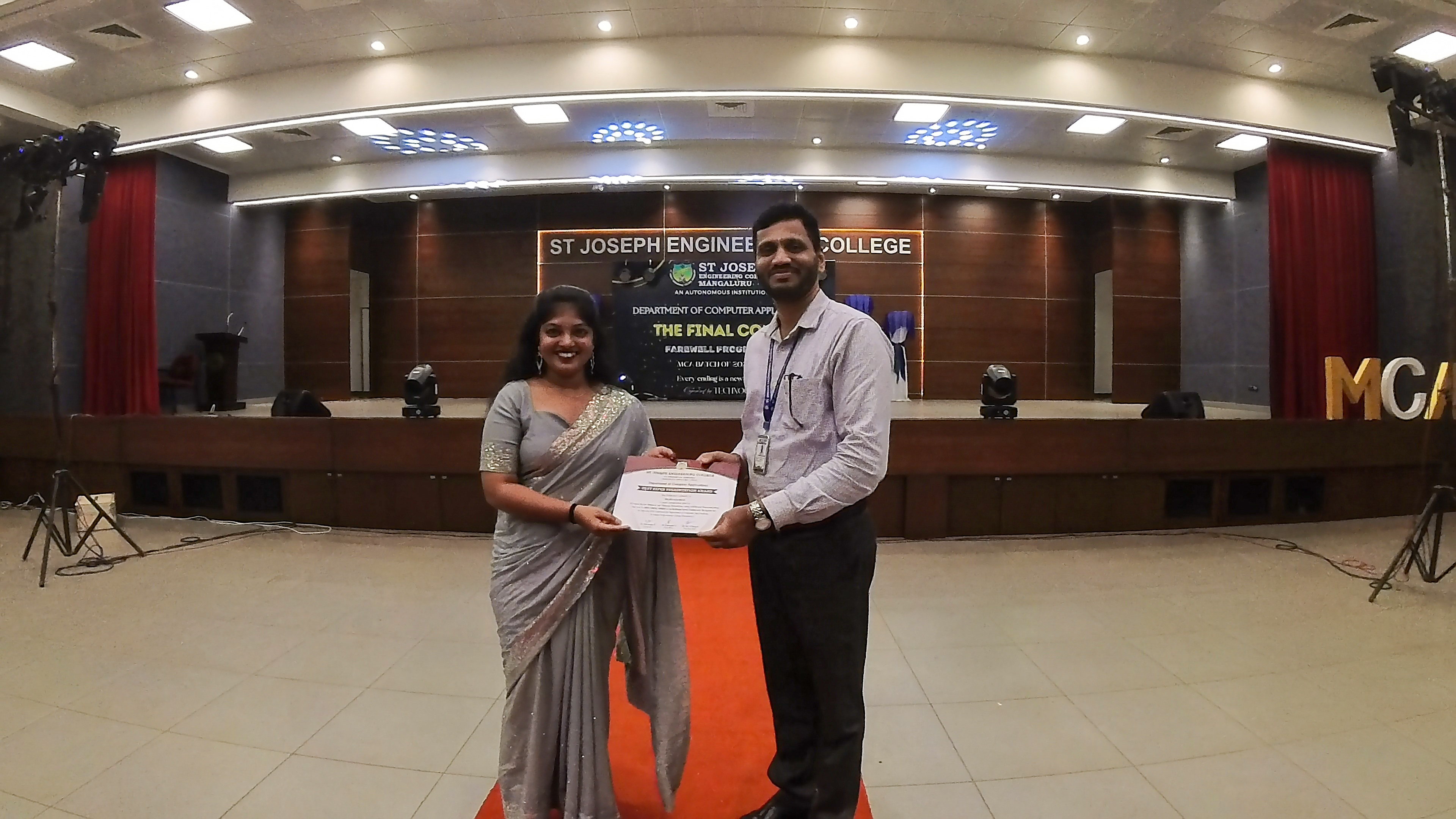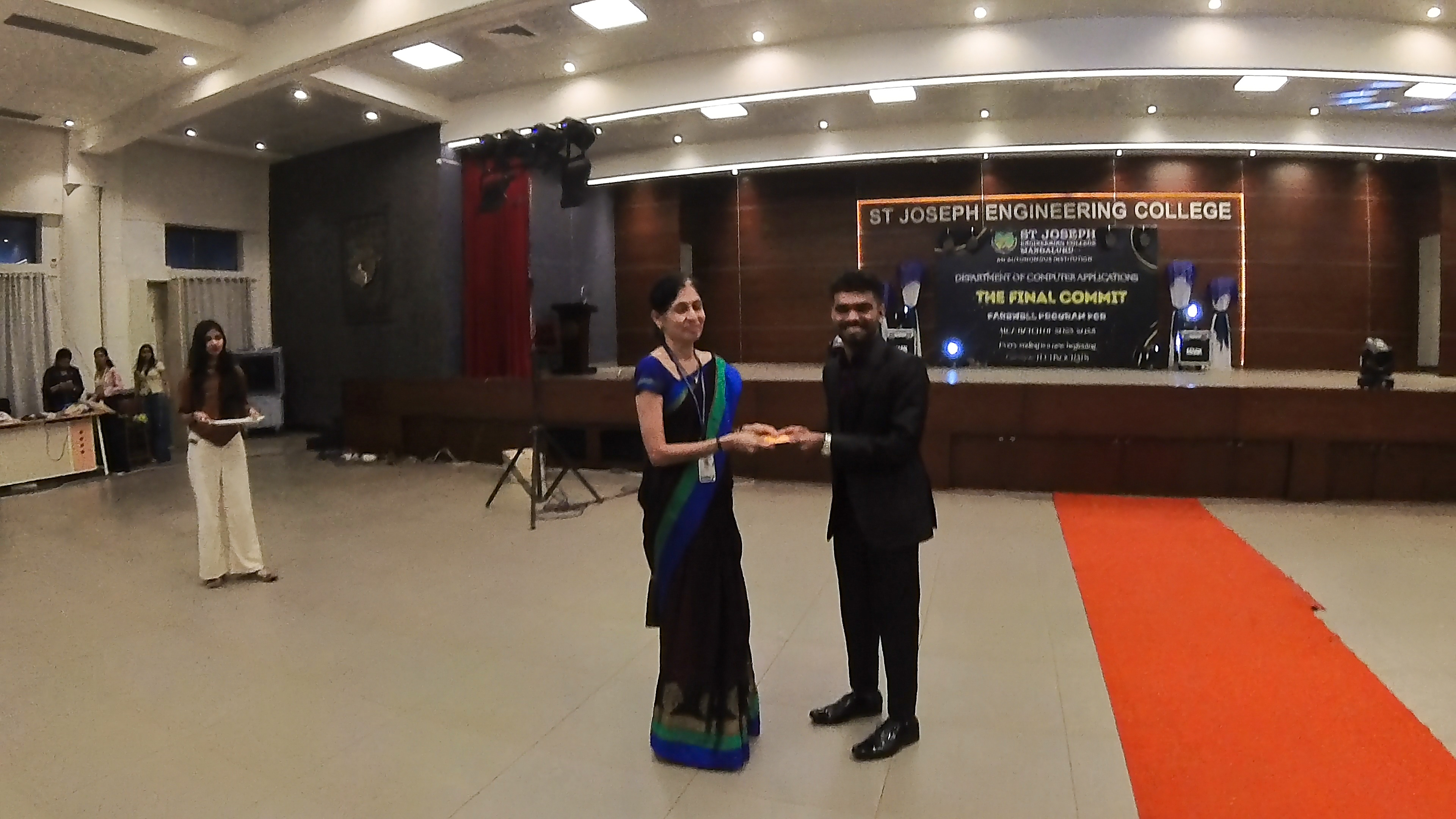 The Vice Principal, Dr. Purushothama Chippar, addressed the gathering and extended his best wishes to the outgoing batch, encouraging them to pursue their dreams with determination and confidence. Dr Hareesh B, Head of the Department of MCA spoke on the occasion, expressing pride in the students’ accomplishments and offering valuable advice for their professional and personal growth.