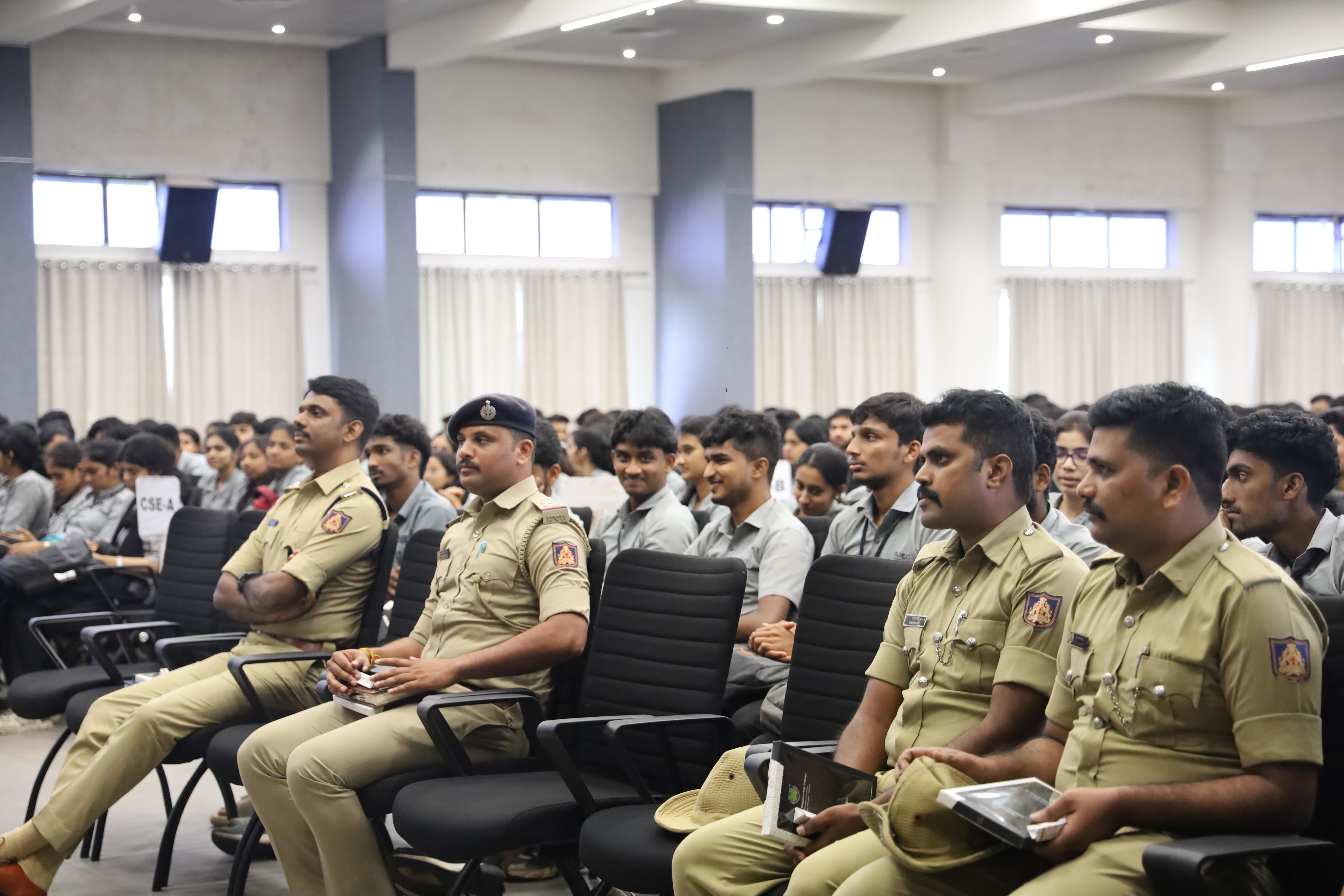 Mr. Arun and Mr. Pradeep spoke about the growing threats of cybercrime and how easily individuals can fall prey to online scams. They explained that by paying even a small amount or clicking on suspicious links, cybercriminals can gain access to personal information and gradually trap victims, leading to severe financial loss. They urged students to always stay alert and never become victims or perpetrators of such crimes, emphasizing that engaging in activities harmful to society can have serious consequences. Once a police complaint is registered under an individual’s name, it can become difficult to obtain government jobs, passports, or visas in the future. Hence, students must act responsibly, safeguard their data, and immediately report any suspicious activity to the nearest police department.