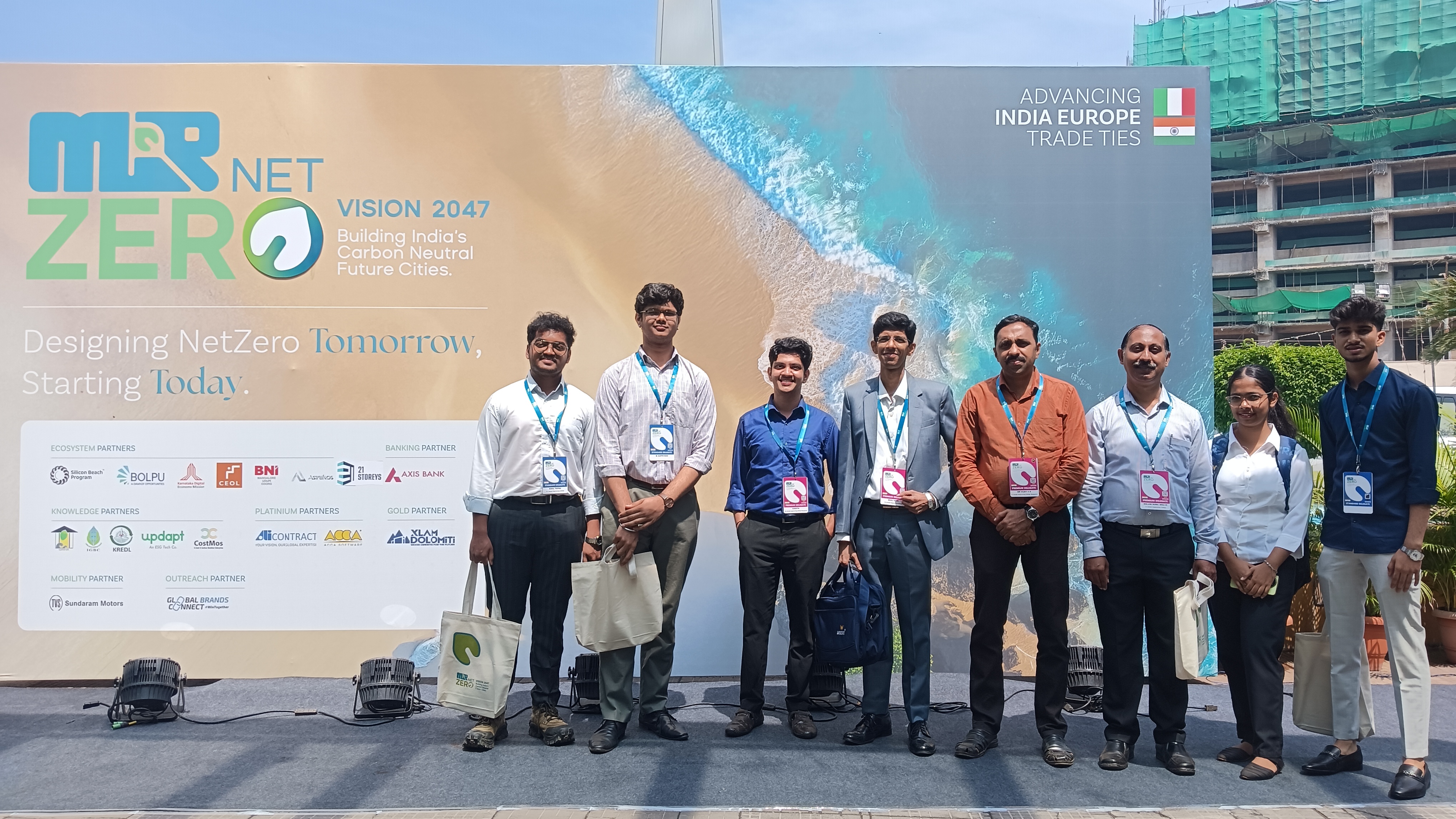 A group of students, accompanied by Dr. Nishitha D’Souza, Dr. Aswathy, Mr. Ajeeth B, and Ms. Sinchana, participated in the MIR Net Zero Summit held on 20 February 2026 at TMA Pai Hall, Mangaluru, on the theme “Vision 2047; Building India’s Carbon Neutral Future Cities.”
