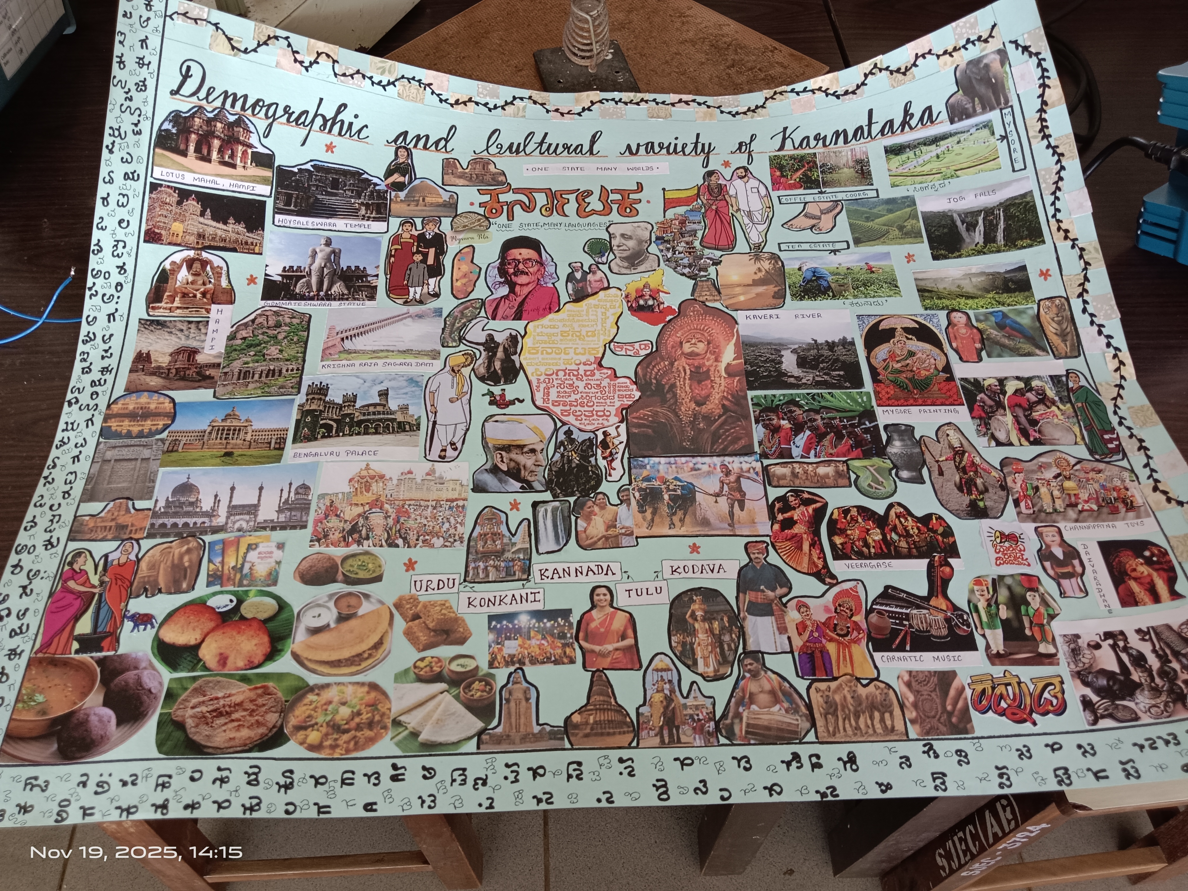 The Department of Electronics and Communication Engineering, in association with the IEEE SJEC Student Branch and IEEE SJEC GRSS Chapter, organized a Collage Making Competition during the month of November on the occasion of Kannada Rajyotsava. The event aimed to celebrate the demographic and cultural variety of India, promote creativity and awareness about the nation’s unity in diversity, and encourage students to artistically express India’s rich traditions and heritage. Conducted under the DEIAB activities of IEEE, the competition received a funding support of $1000 and was open to all students of SJEC, attracting participation from 18 teams across various departments.