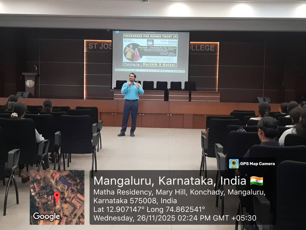 The event concluded with a vote of thanks proposed by Ms. Madhavi Gatty, acknowledging the efforts of the resource person, organizers, and participants for making the workshop a success. Overall, the session proved to be highly beneficial, equipping students with essential knowledge and skills to ensure their safety both physically and digitally.