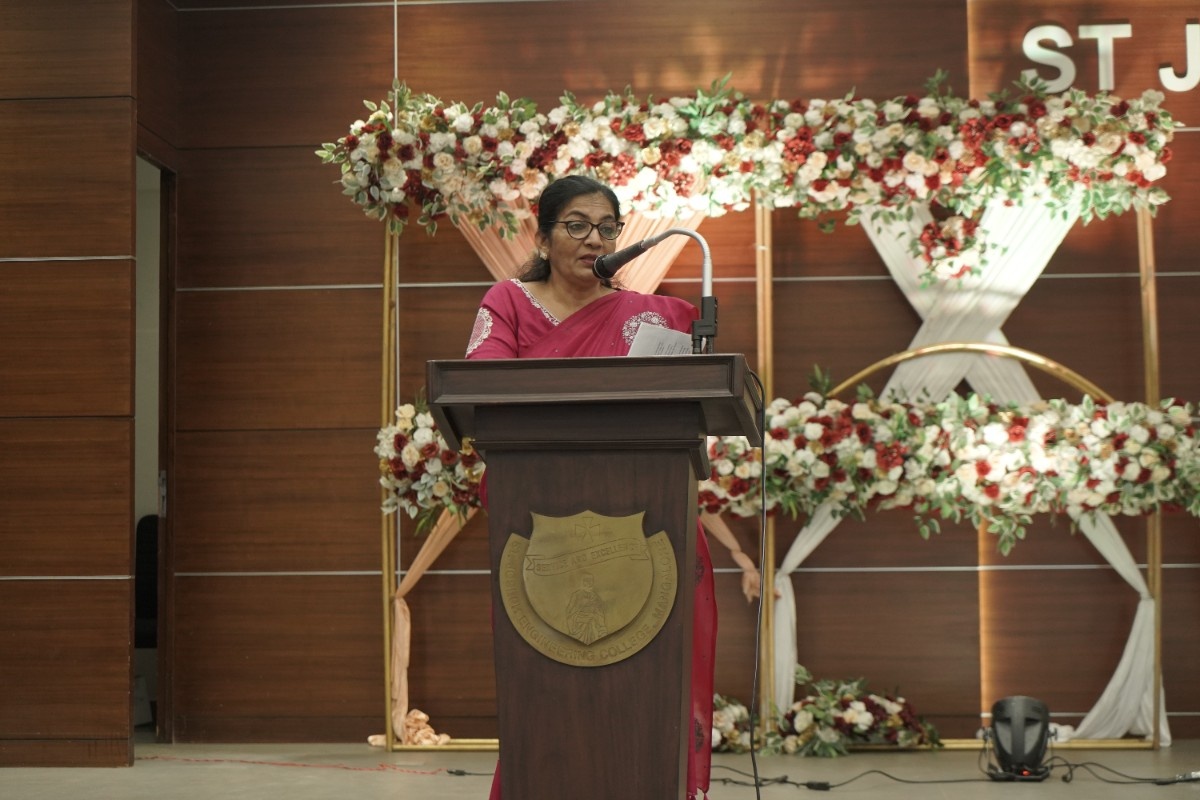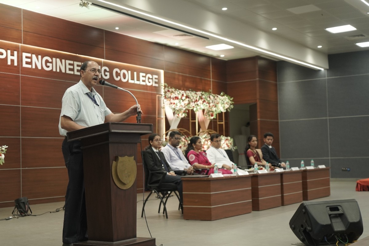 Dr Rio D’Souza, Principal, SJEC delivered an insightful address on Artificial Intelligence and Human Coevolution, highlighting the role of creativity and responsible use of emerging technologies such as ChatGPT-6. He urged students to align human intelligence with technological growth.