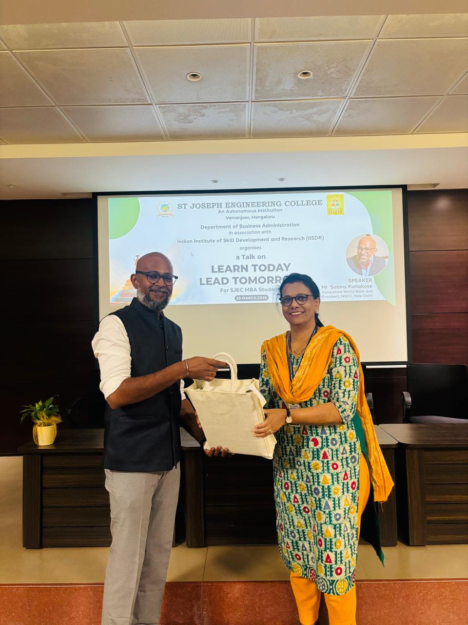 The Department of Business Administration, in association with Indian Institute of Skill Development and Research (IISDR), organized an inspiring talk on “Learn Today – Lead Tomorrow” on 28th March 2026 (Saturday) from 10:00 AM to 11:30 AM at Prerana Hall for MBA students.