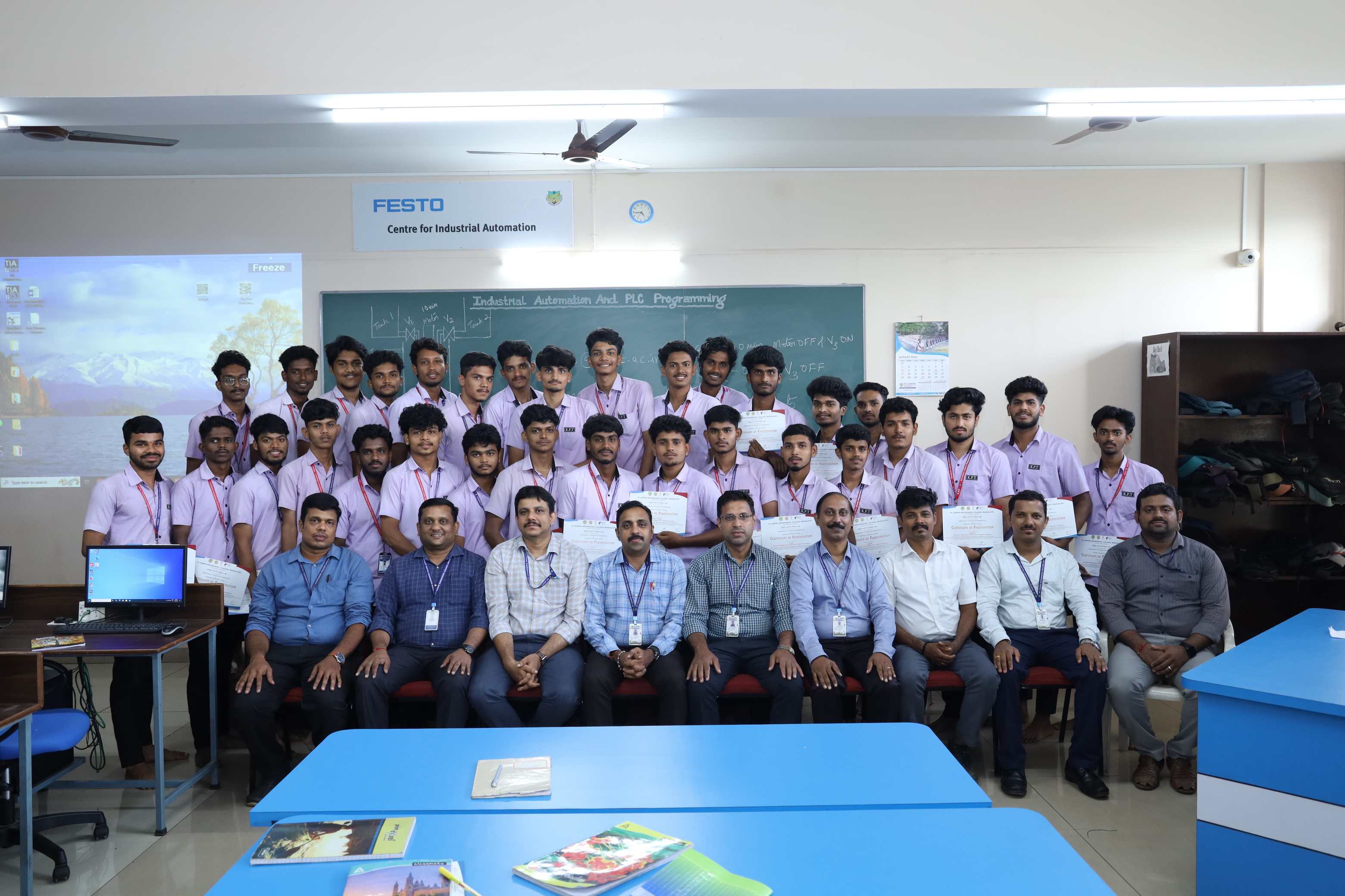 The workshop bridged theory and practice, offering students exposure to hydraulics, pneumatics, electro-pneumatics, and PLC programming. The sessions built confidence in handling industrial automation tools and software, preparing participants for industry challenges.