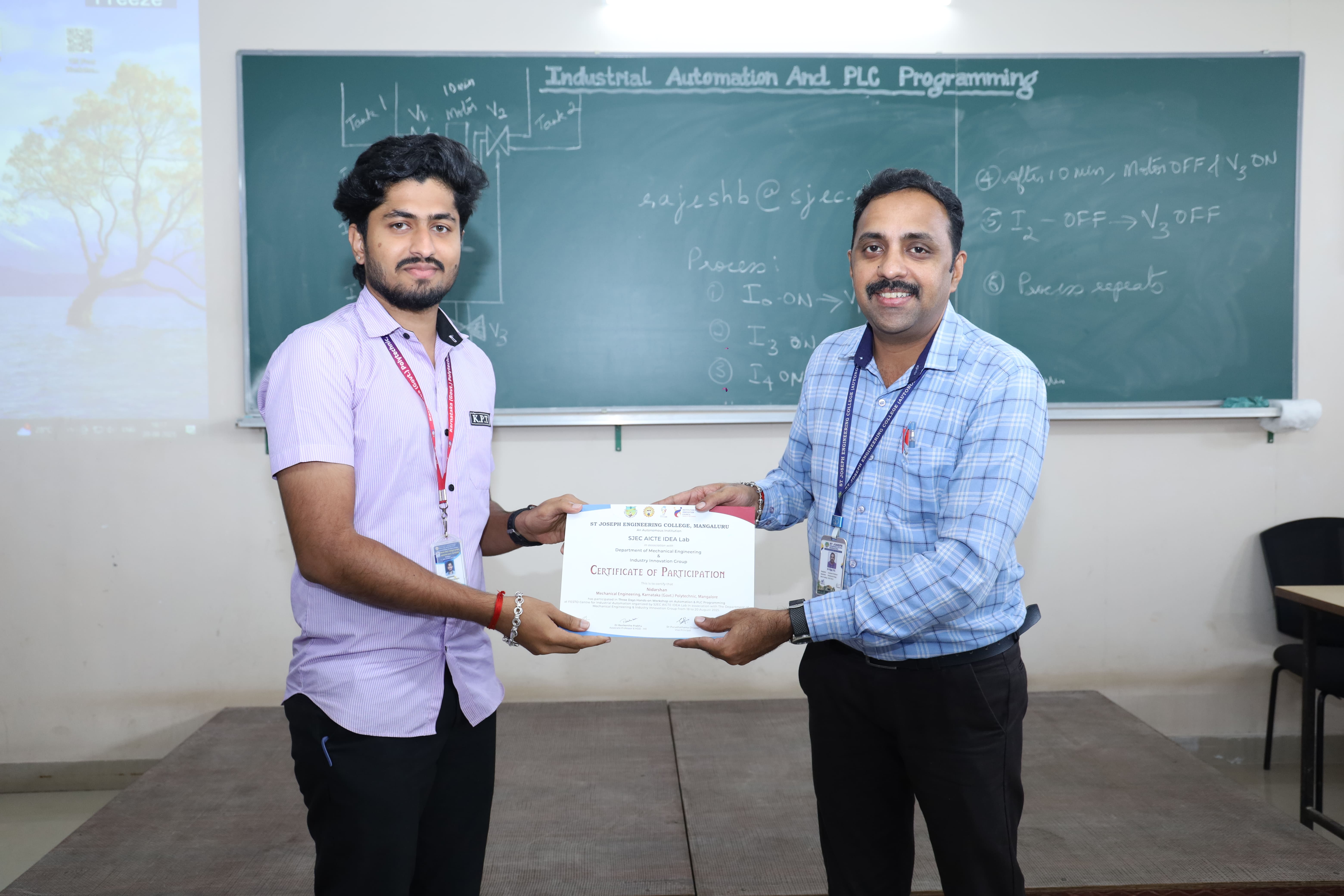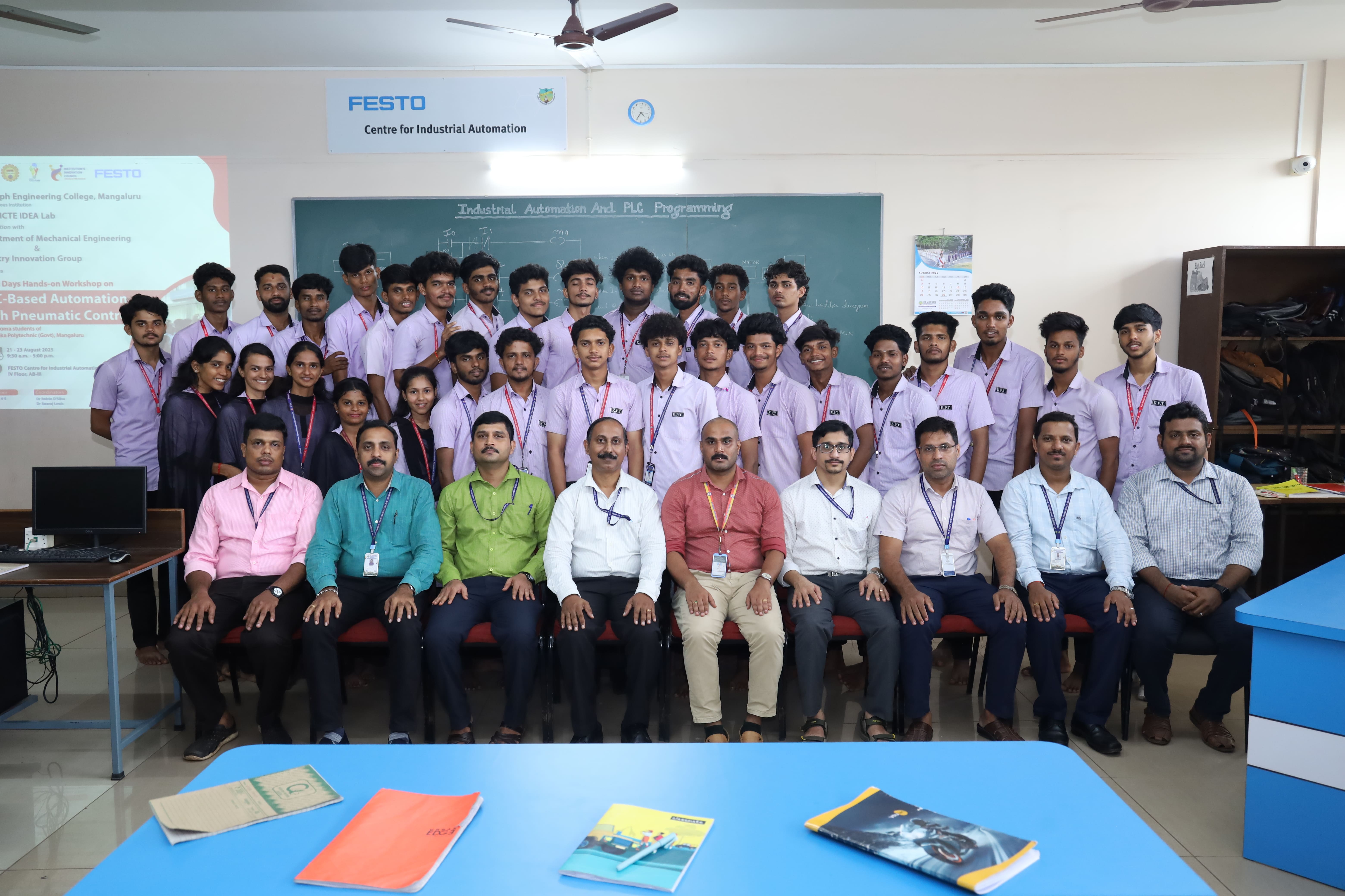 St Joseph Engineering College (SJEC), through its AICTE IDEA Lab in association with the Department of Mechanical Engineering and Industry Innovation Group, organized two consecutive 3-day hands-on workshops at the FESTO Centre for Industrial Automation, SJEC, Vamanjoor. The first workshop on “Automation & PLC Programming” was held from 18 to 20 August 2025, followed by the second workshop on “PLC based Automation with Pneumatic Controls” from 21 to 23 August 2025. Both workshops were conducted exclusively for diploma students of Karnataka Polytechnic, Mangaluru. The programs were inaugurated by Dr. Ravikantha Prabhu, Head of the Department of Mechanical Engineering, who emphasized the growing importance of industrial automation and the need for hands-on, industry-oriented training.