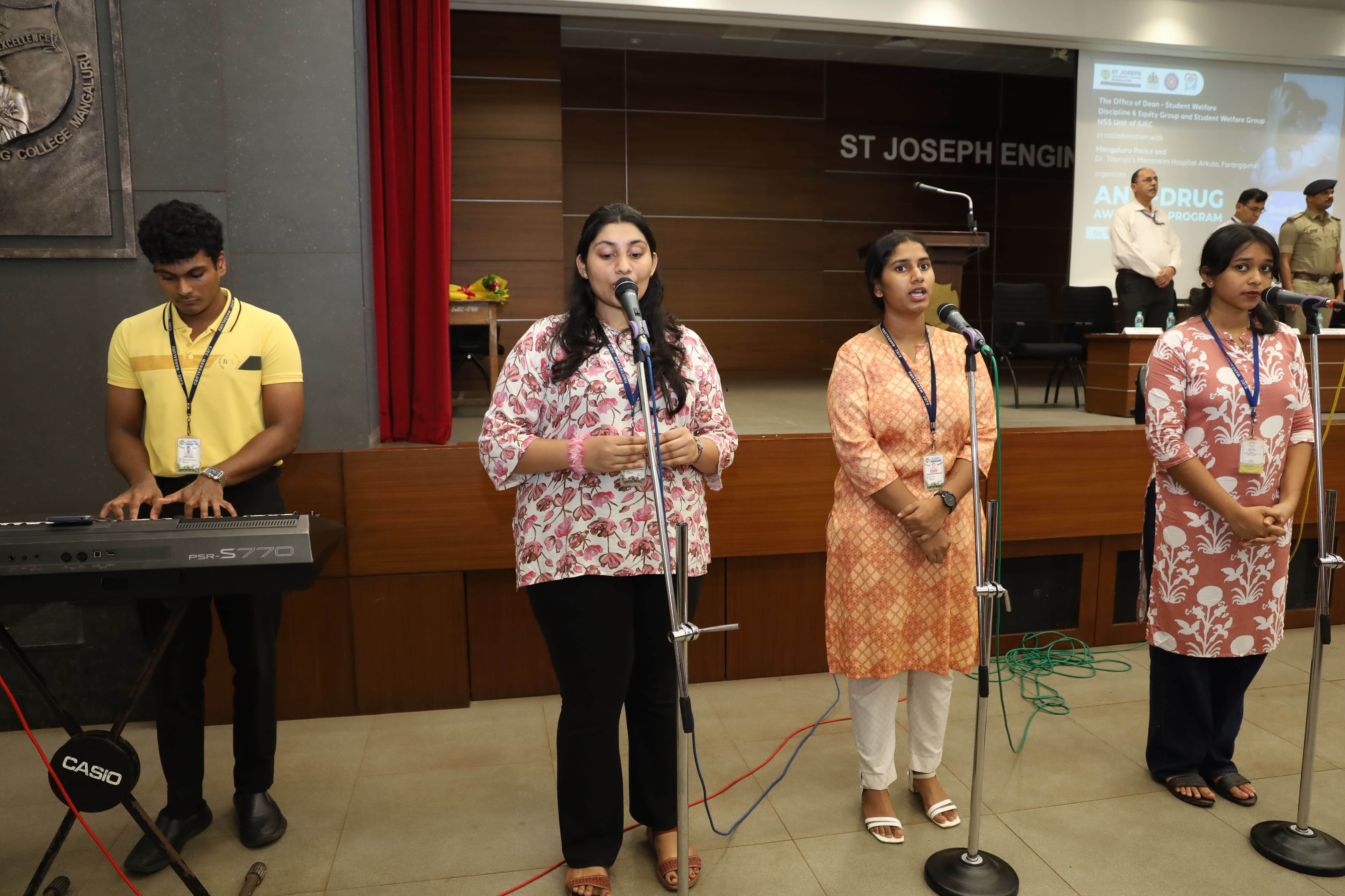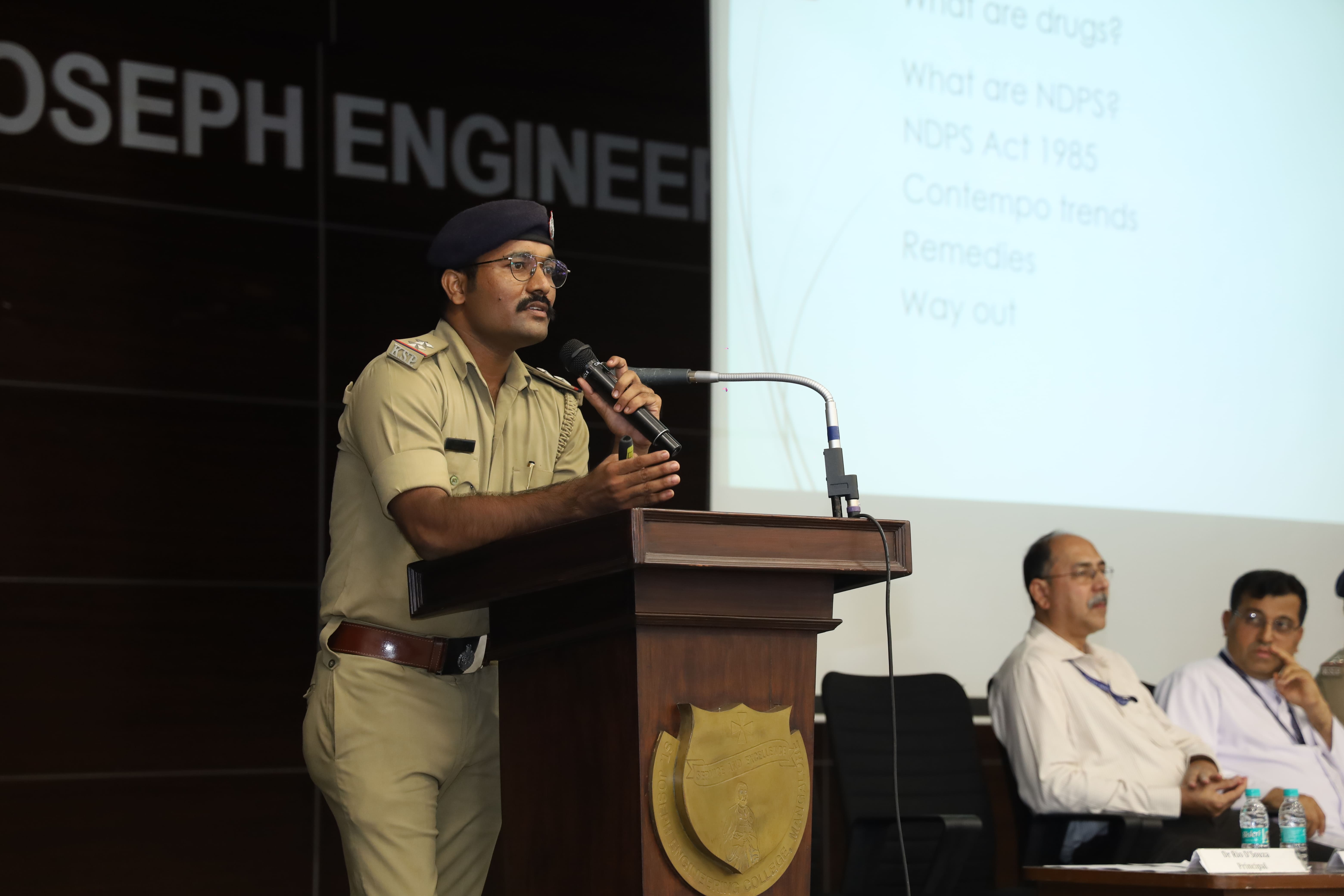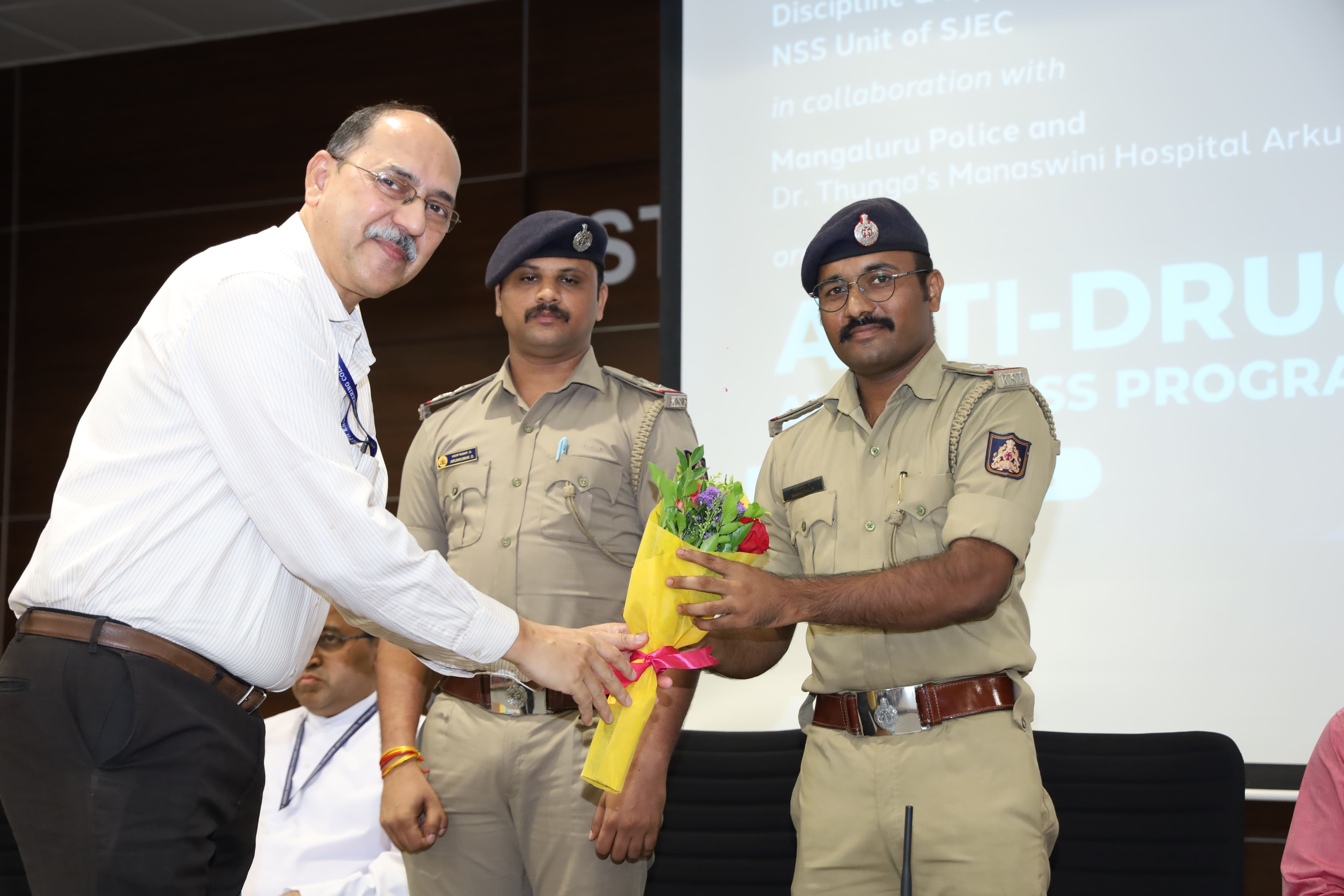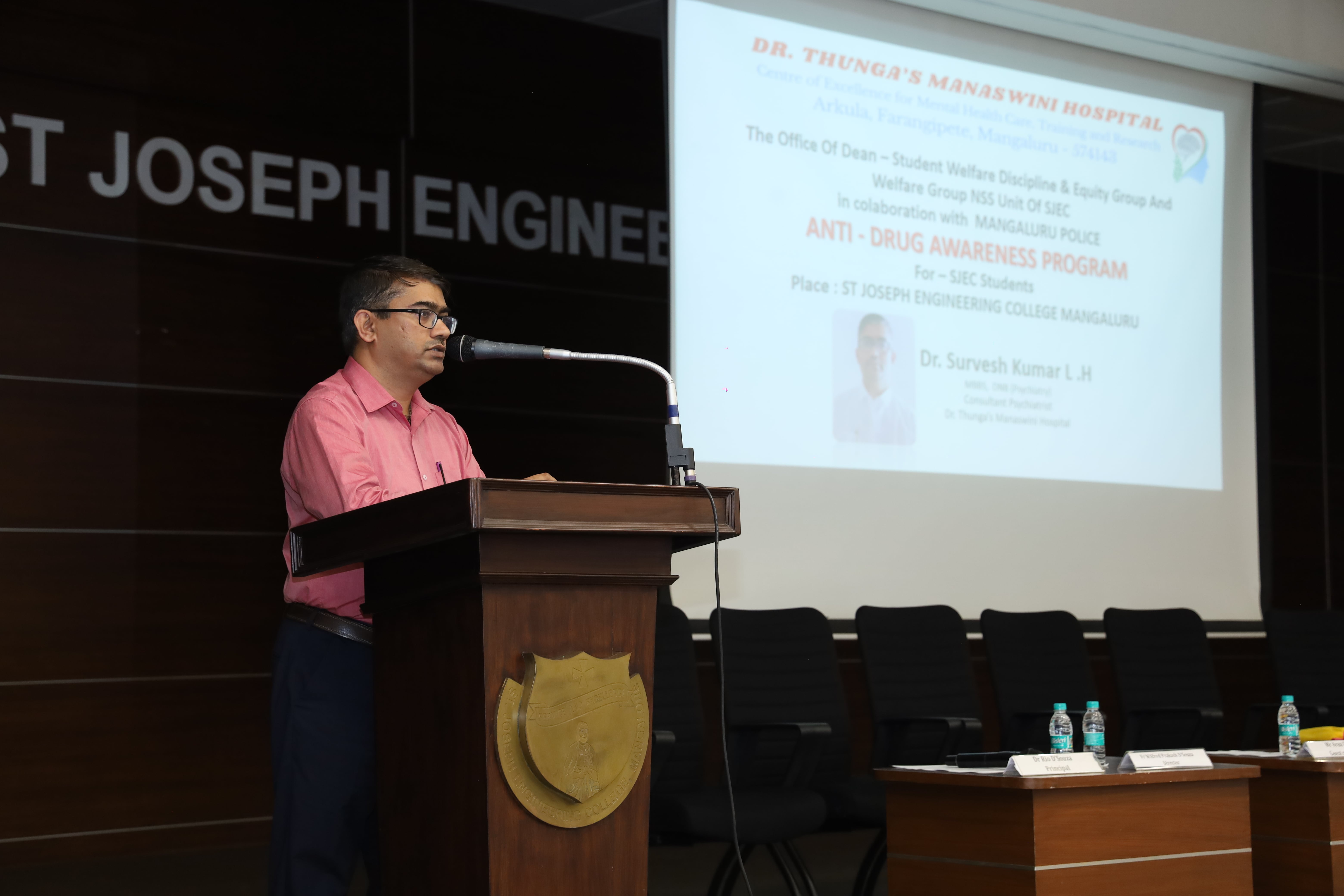 The Office of Dean – Student Welfare, Discipline & Equity Group, Student Welfare Group, NSS Unit of St. Joseph Engineering College (SJEC) in collaboration with Mangaluru City Police, Dr. Thunga’s Manaswini Hospital, Arkula, Farangipete, organized an Anti-Drug Awareness Program for 3rd Year BE students of SJEC on Tuesday, 19 August 2025, at 10:30 am in the Kalam Auditorium.