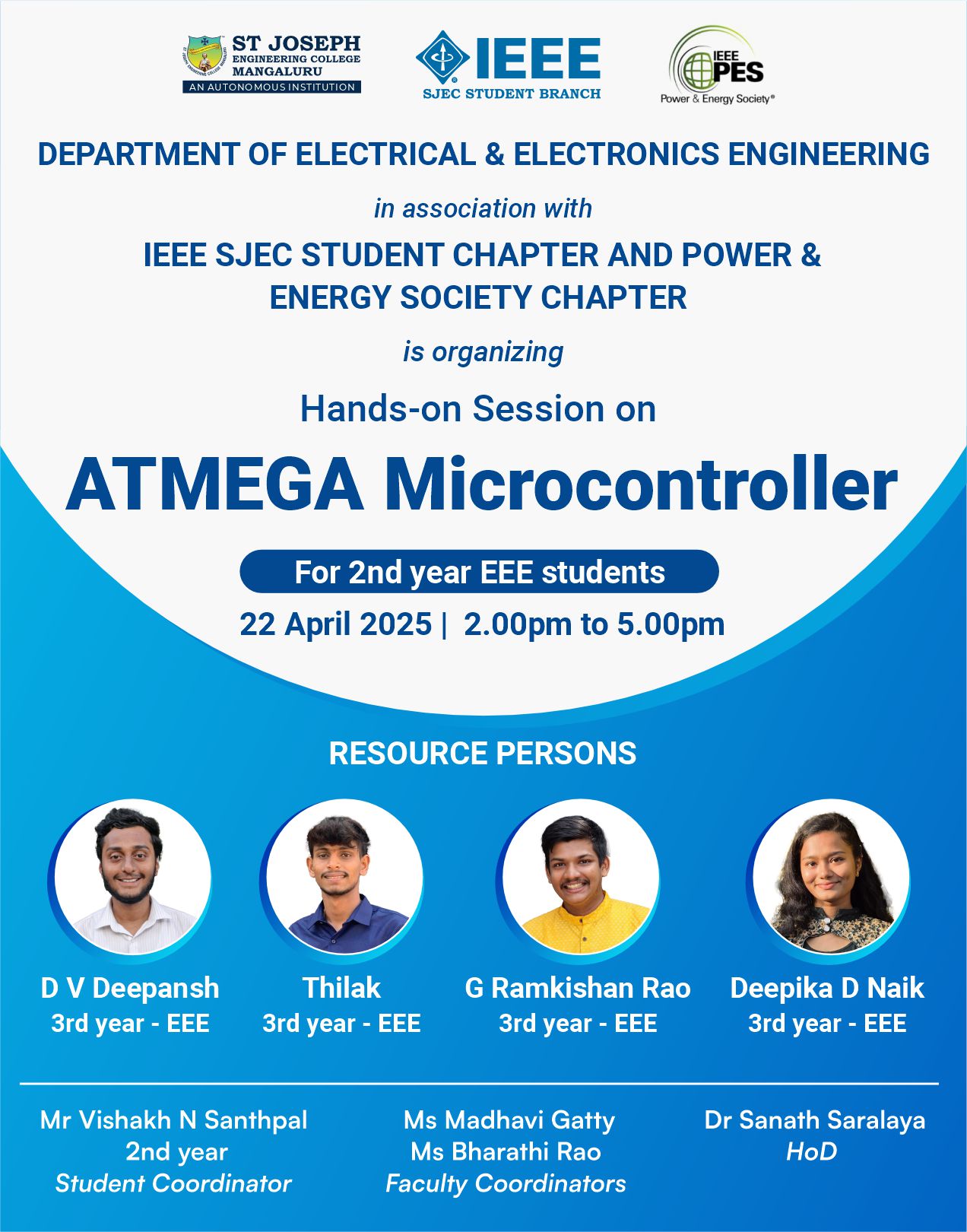 The ATmega328P Microcontroller Workshop provided an excellent opportunity for students to gain real-world experience in embedded systems development. The session successfully bridged the gap between theoretical learning and practical application. The program was coordinated by Ms Bharathi Rao and Ms MadhviGatty- Assistant Professors, Dept of EEE.