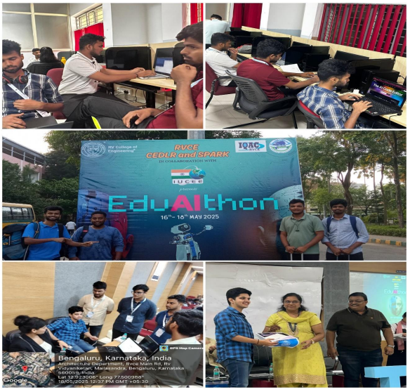 Mr. Ajeeth B, faculty member at St Joseph Engineering College (SJEC), along with four students, participated in EduAIthon 2025—a national-level 48-hour hackathon organized by RV College of Engineering (CEDLR & SPARK), Benagluru in collaboration with IUCEE. Held from May 16 to 18, the event focused on “Breaking Barriers – Simplifying Complex Engineering Concepts.”