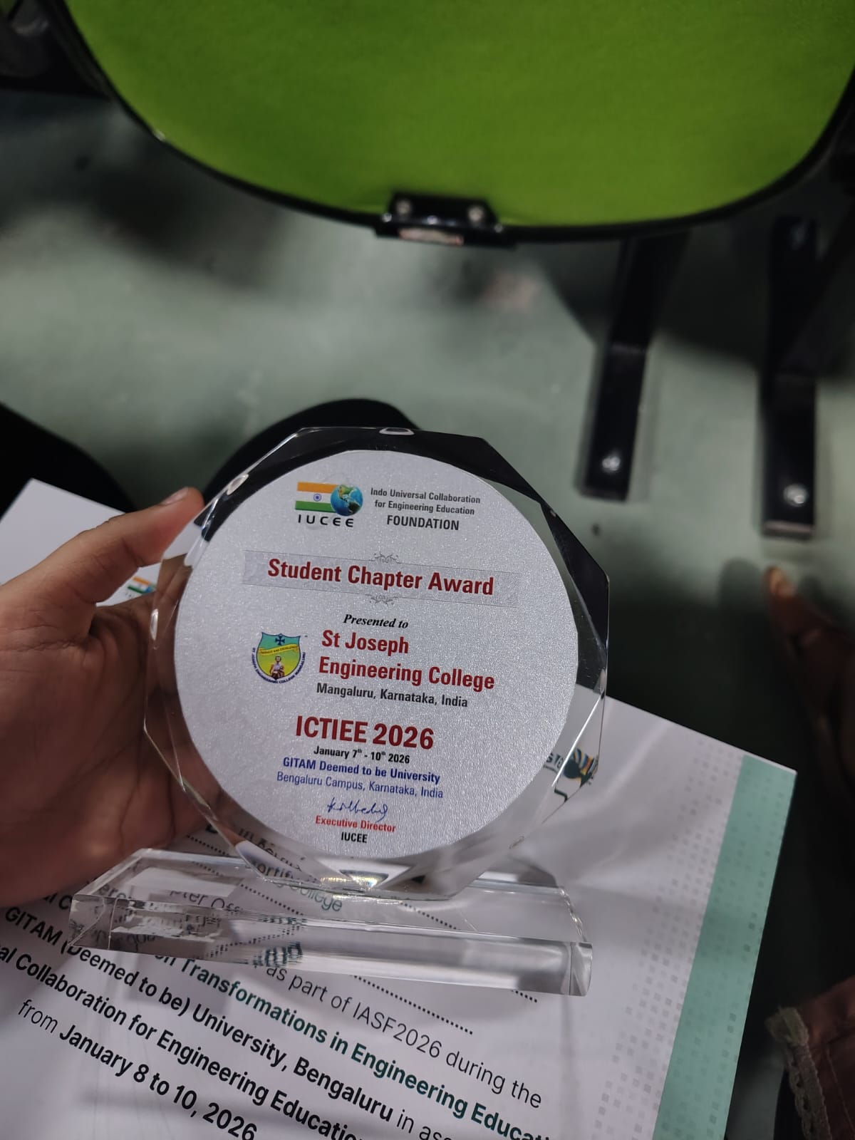 Based on the presentation and overall chapter performance, the student chapter was awarded the "Best Student Chapter" during the IUCEE Awards Ceremony held on 10 January 2026. The participation, jury responsibility, and recognition collectively reflect active institutional engagement in national and international academic initiatives focused on engineering education, innovation, and student development.