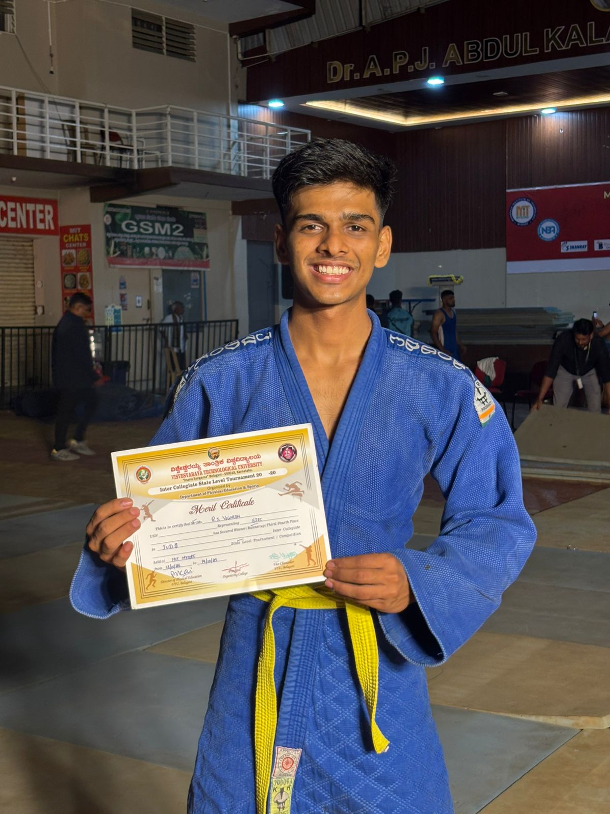 Mr R S Vignesh- I sem CSE secured 2 Place below 60 kg category Judo Championship.