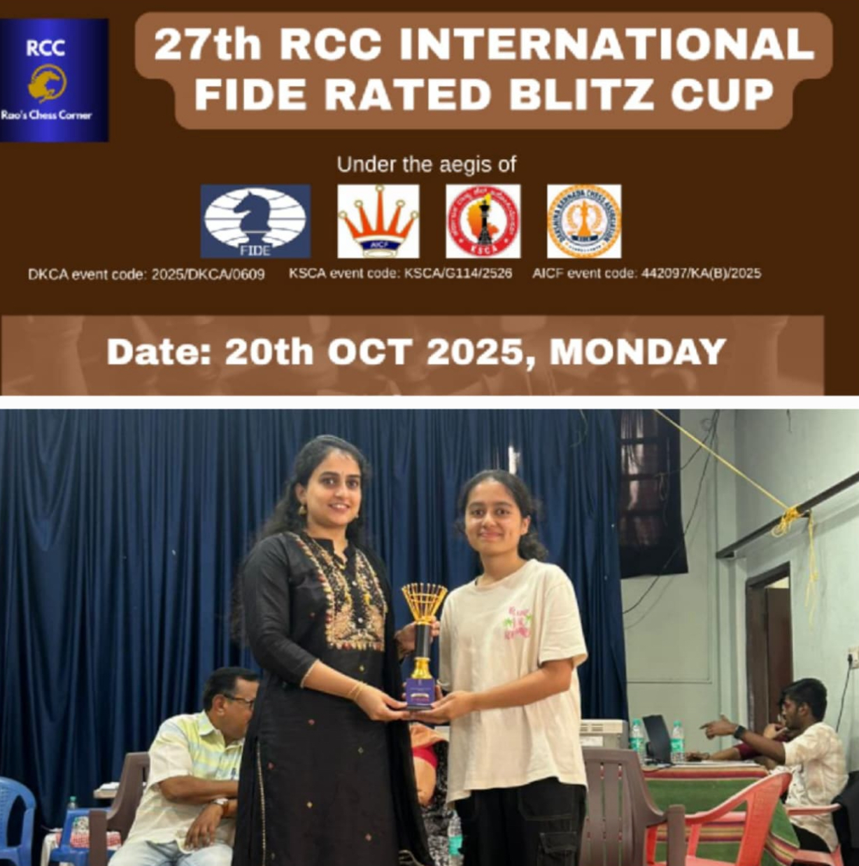 Ms Sharadhi Rai V/CSE secured II Place in Best Female RCC International FIDE rated BLITZ Cup held at Shri Subrahmanya Sabha Mangaluru at 20 October 2025.