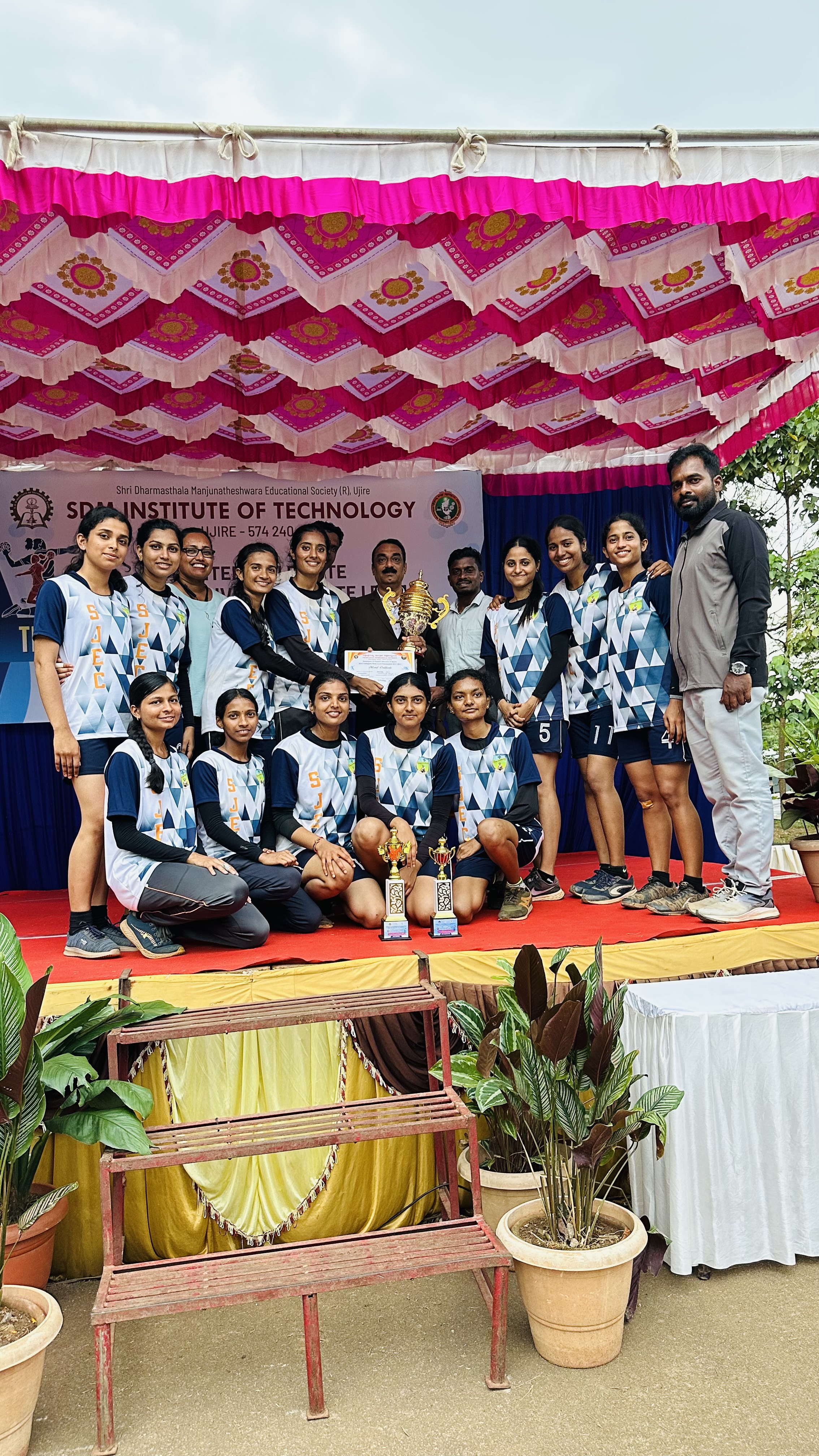 SJEC Women Throwball team secured Winners in VTU State Level Throwball Tournament Ms Bhoomika L Banian III/ MBA was awarded Best thrower and Ms Nisha Valerie Aranha V / CSE was awarded Best All-rounder held at SDMIT, Ujire on 4 December 2025.