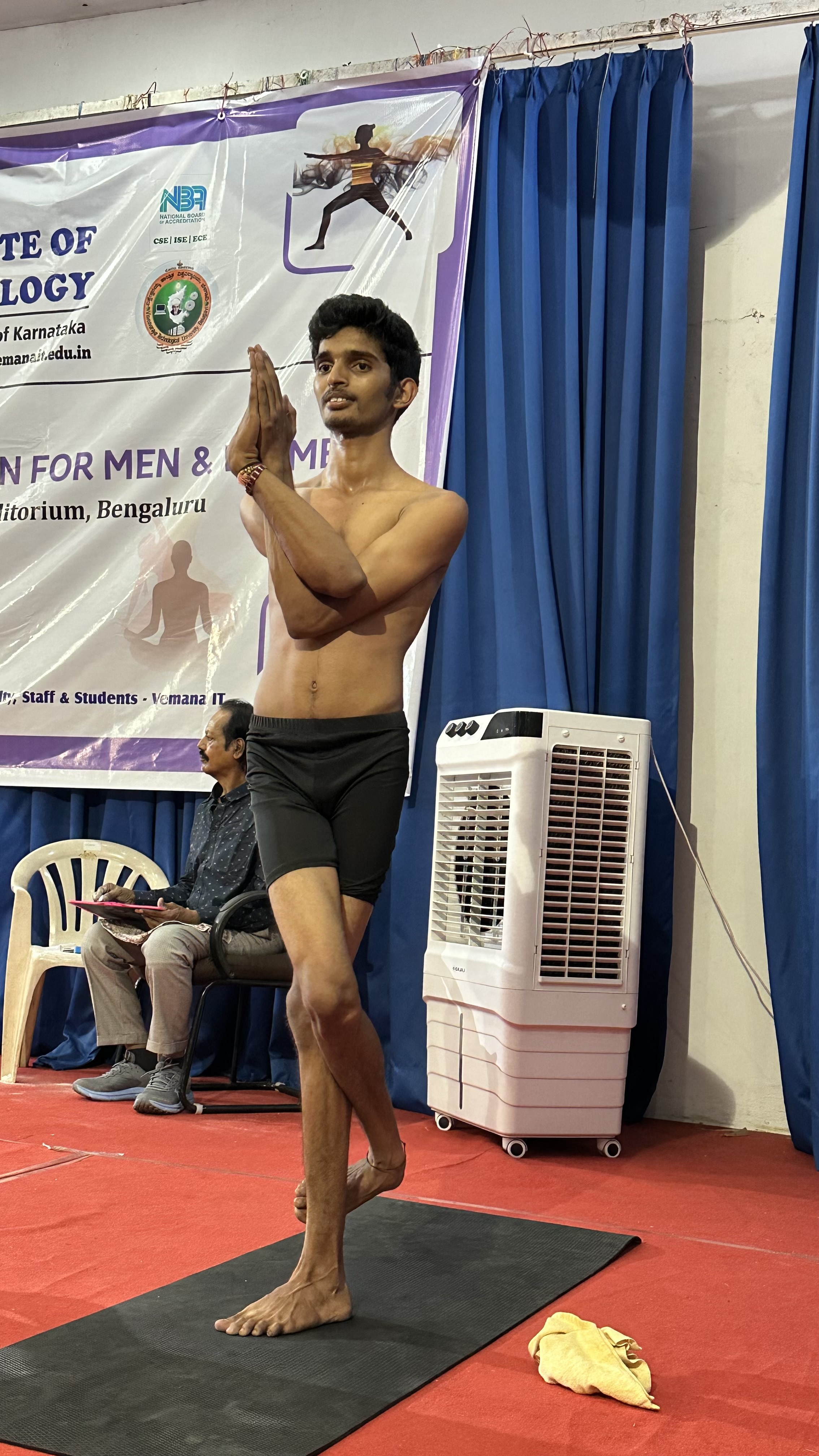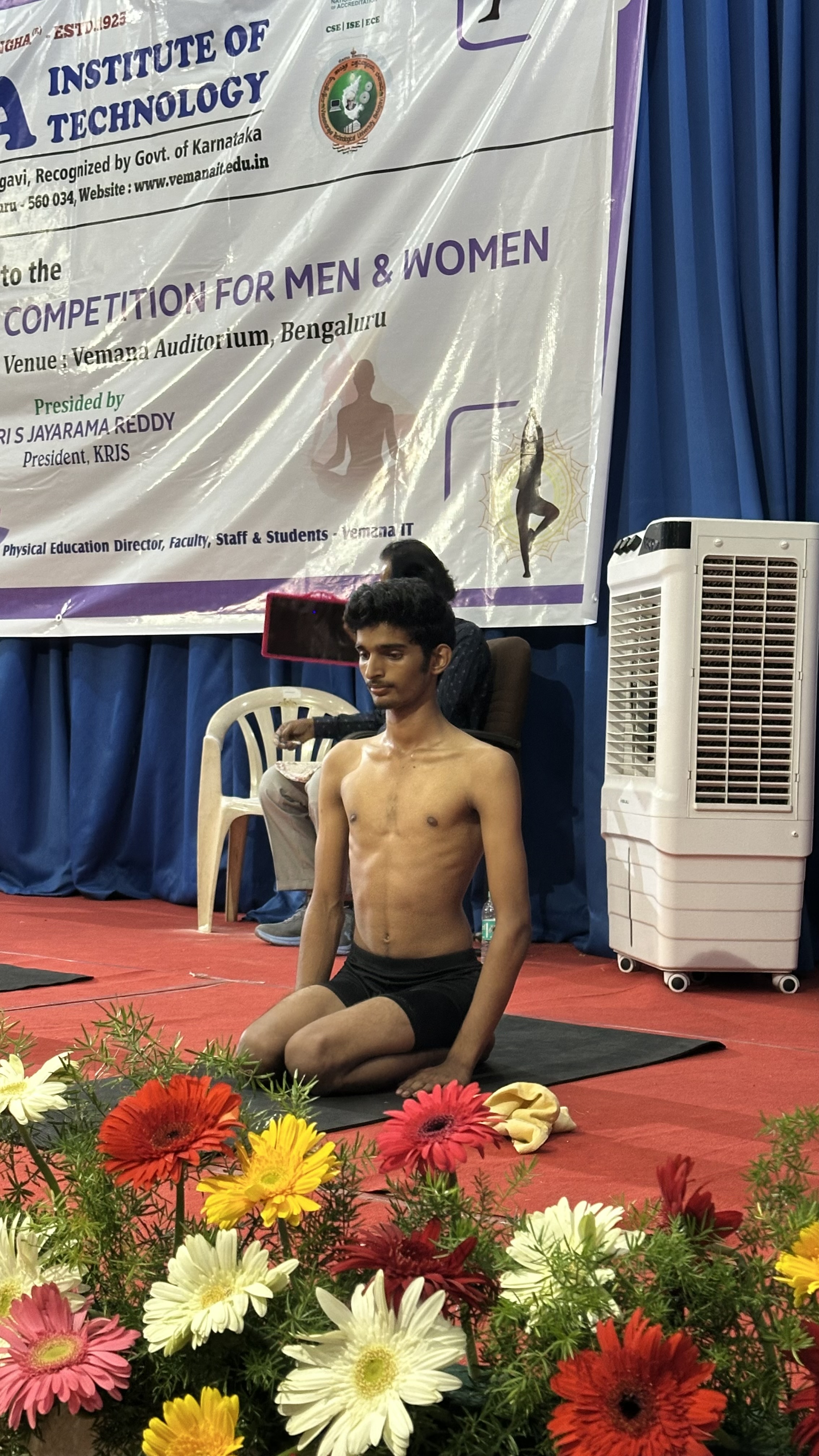 SJEC Mr Nikhil A Poojary - I year AIML participated in VTU State Level Yoga Championship held at Akshaya IT, Tumkuru on 23 July August 2024.