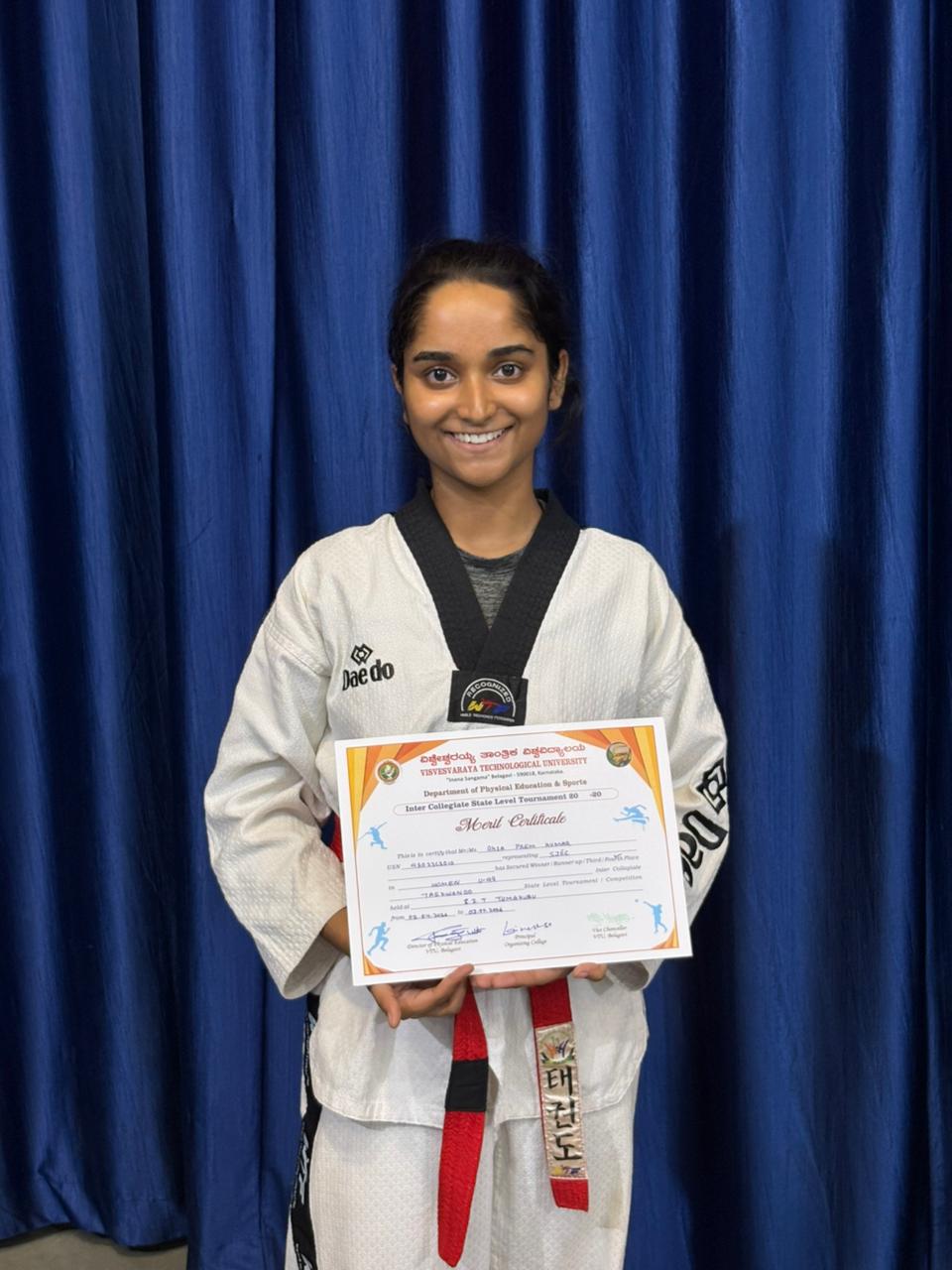 • Ms. Aksa Prem Kumar (VI Sem CSE) secured Third Place in the Below 49 kg category.