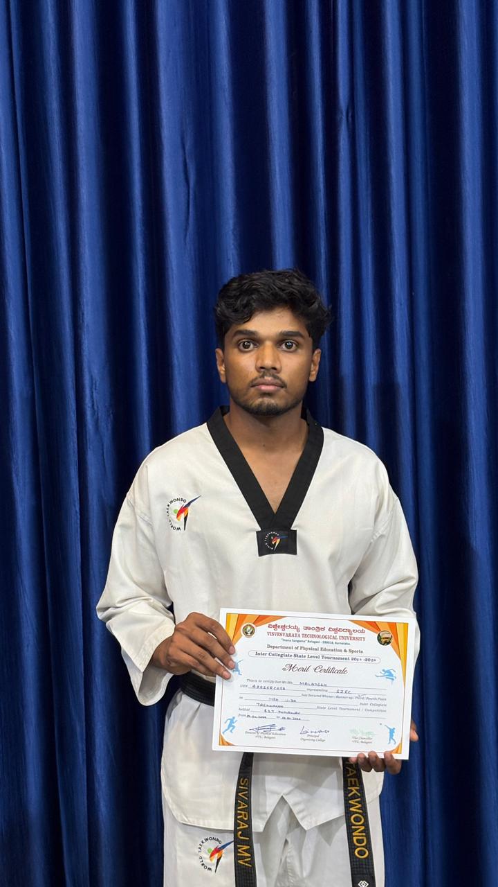 Mr Malatesh Sadananad Angadi II sem ECE secured Third Place in below 74 VTU State Level Taekwondo Championship