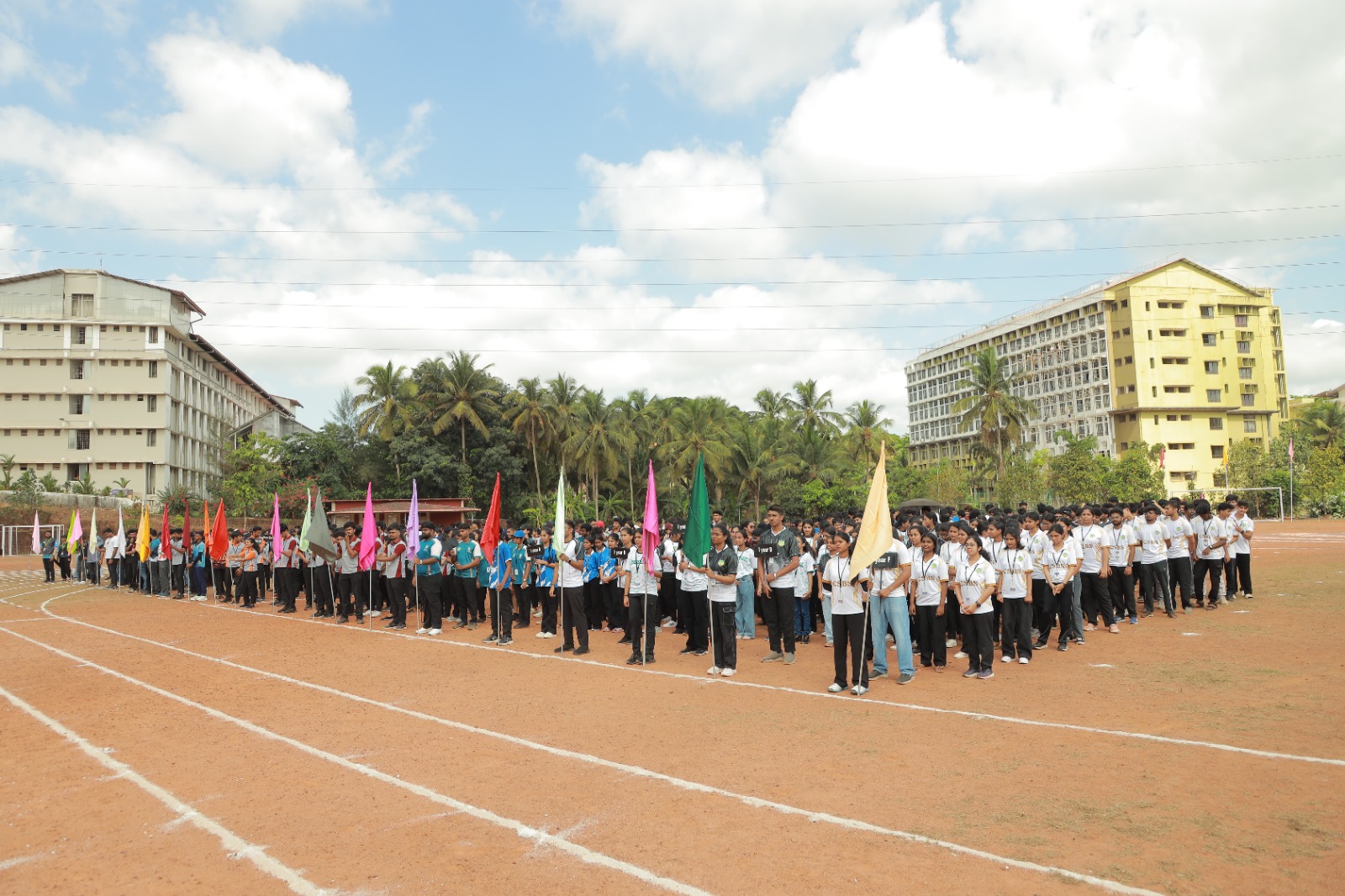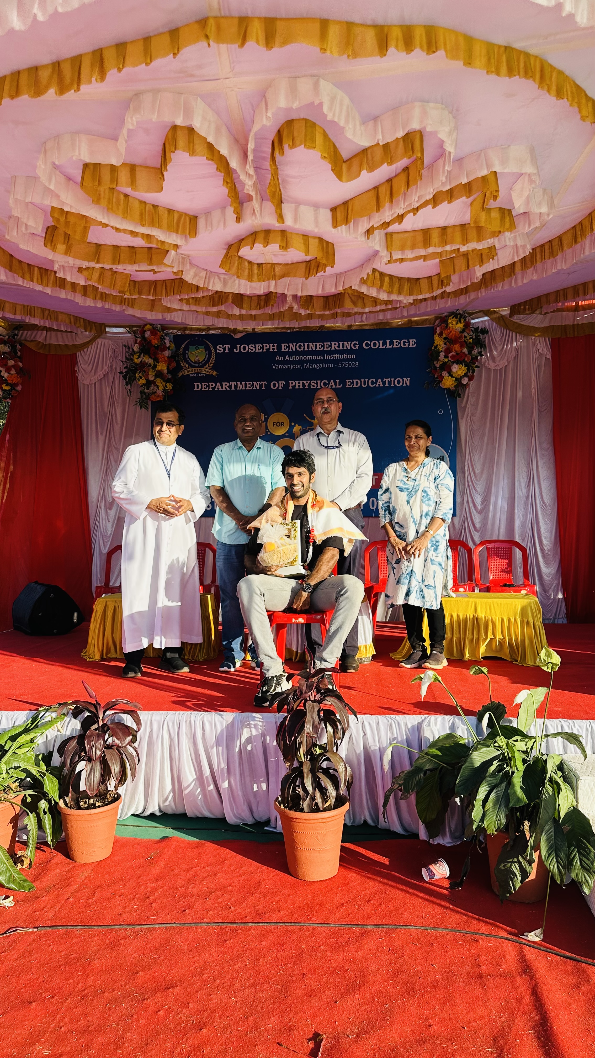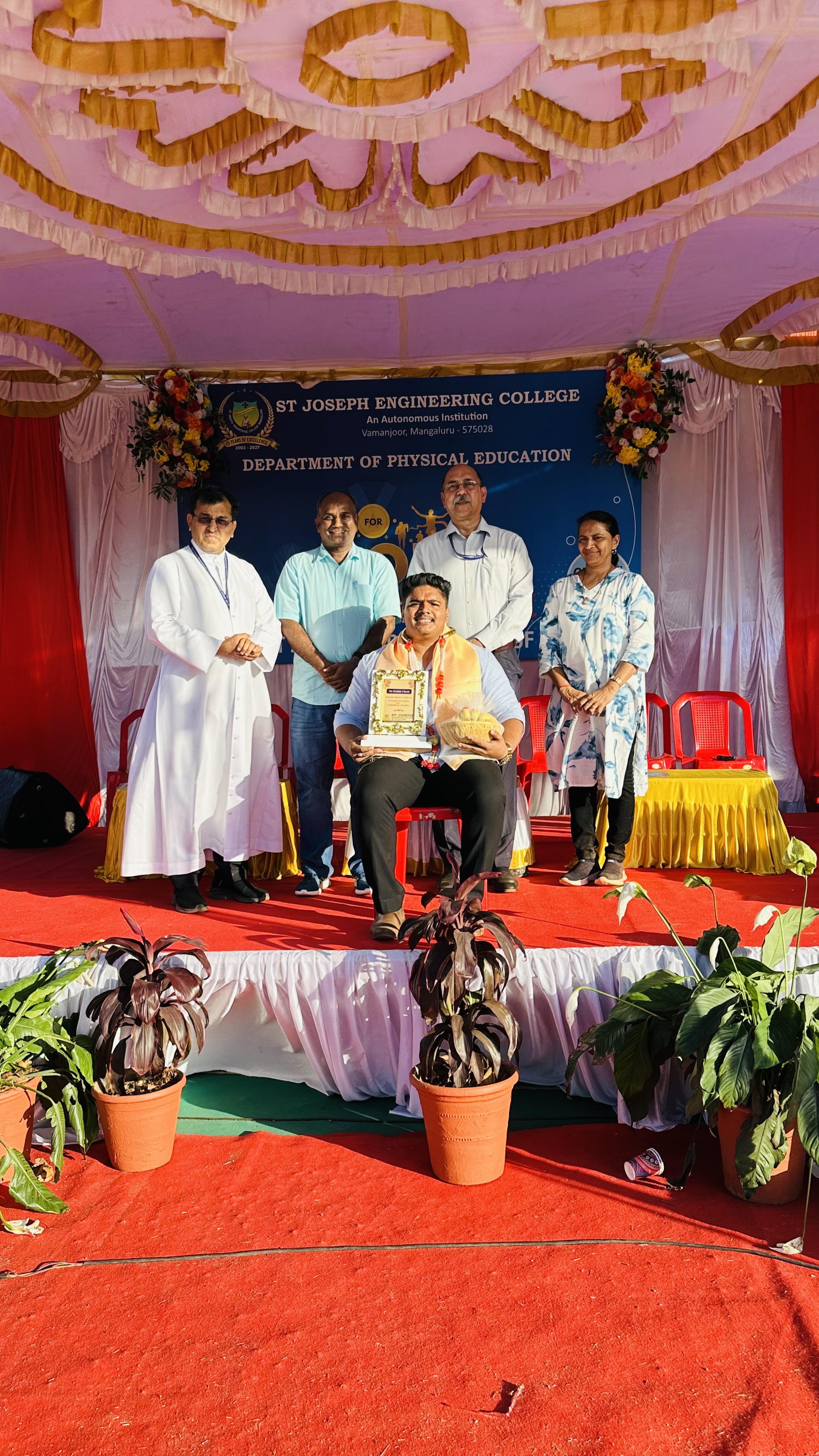 Mr. Mohit Kamat, former International Badminton player and Co-founder & CEO of Baddyzone Sports Club, graced the occasion as the Chief Guest. The dignitaries present included Rev. Fr. Wilfred Prakash D’Souza (Director), Dr. Rio D’Souza (Principal), Dr. K. Jyothi (Dean – Student Welfare), Ms. Priya Miranda (Chairperson – Sports & Wellness Group), Mr. Chitharanjan (Convener), Ms. Himani Kishan Raj (Co-Convener), and Ms. Vaneesha V. Rodrigues (Physical Education Director).