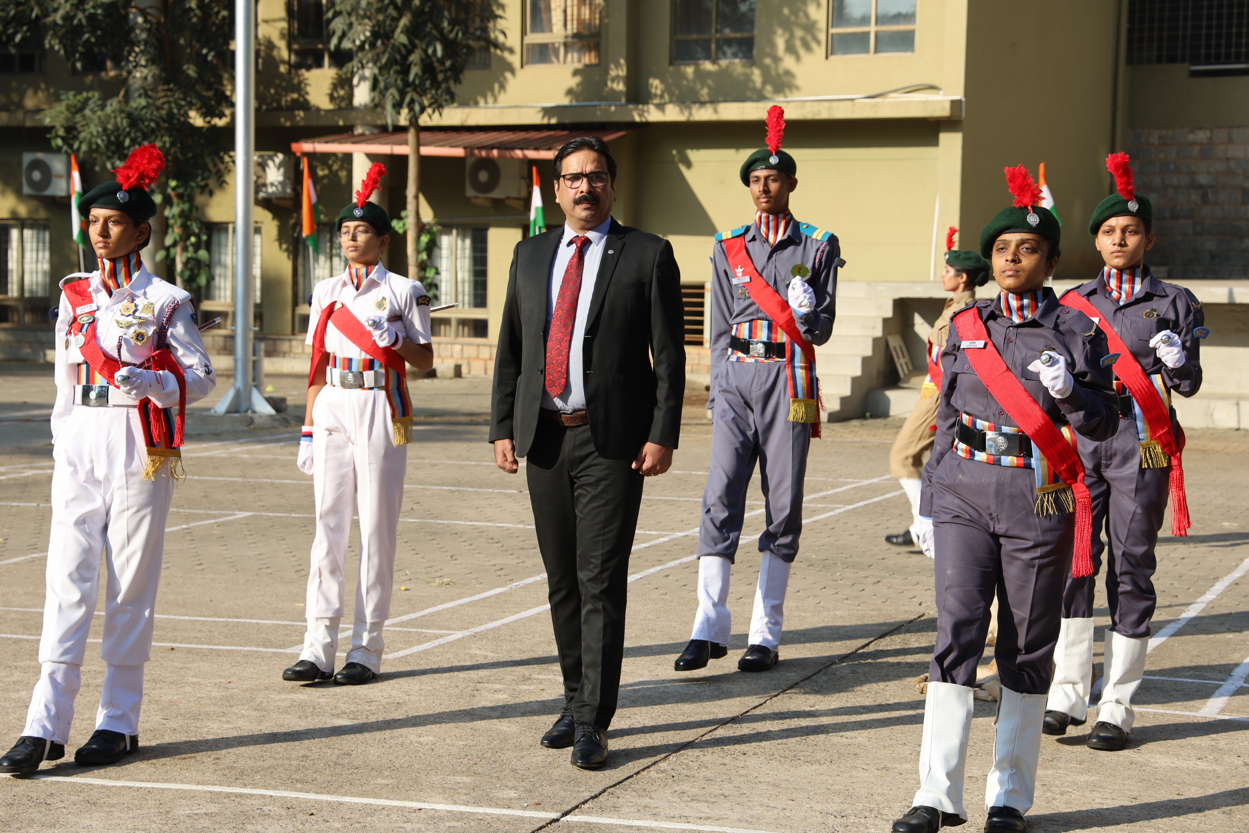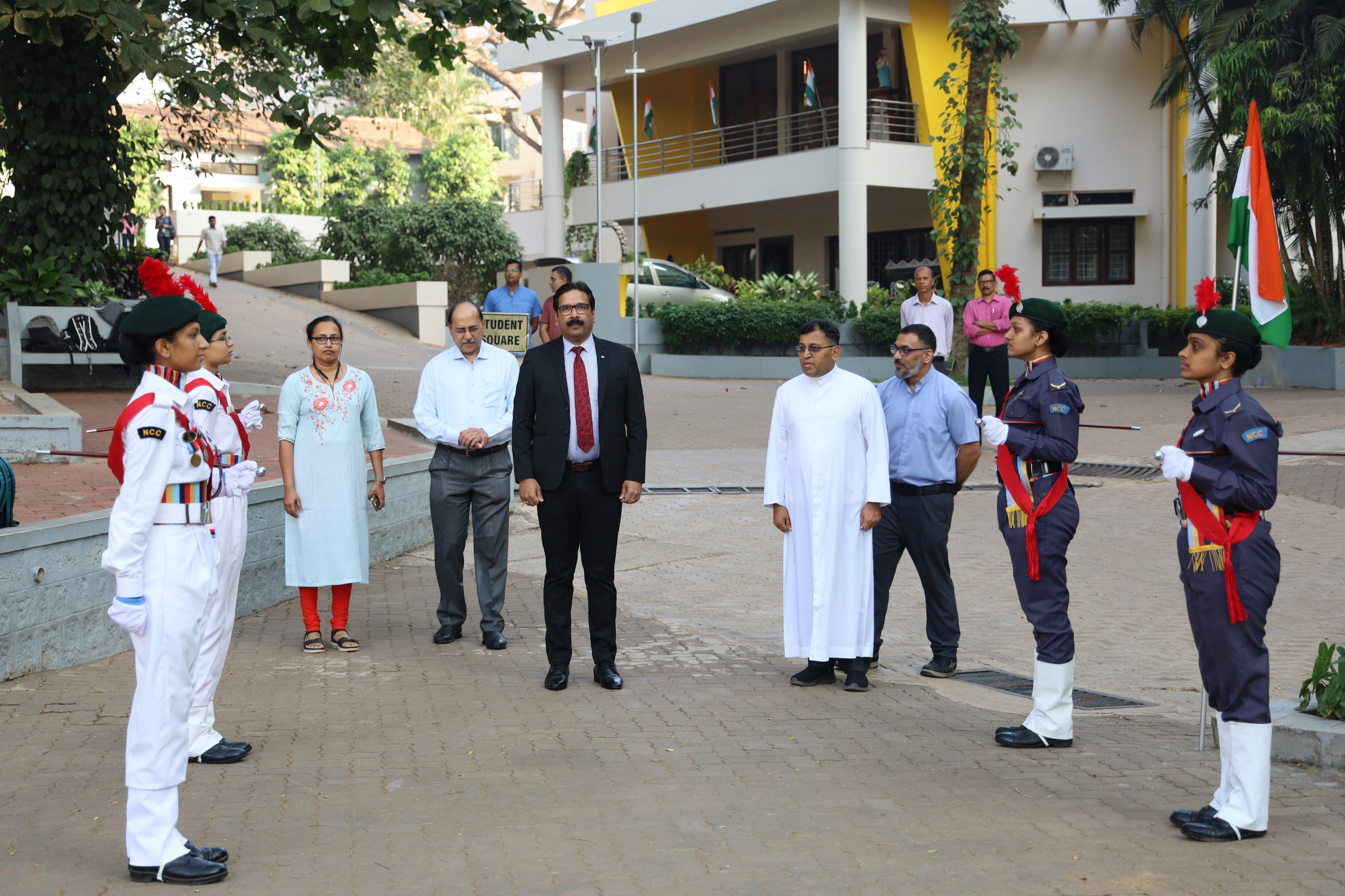 Dr. Melwyn D’Souza, the Chief Guest of the Republic Day celebration, delivered an inspiring address in which he appreciated the discipline, dedication, and impressive marching displayed by the cadets. He emphasized that students should inculcate the same qualities in their academic pursuits, as this would help them achieve greater heights. He also urged the students to use the freedom they have gained responsibly for the welfare of the nation, nature, and society as a whole.