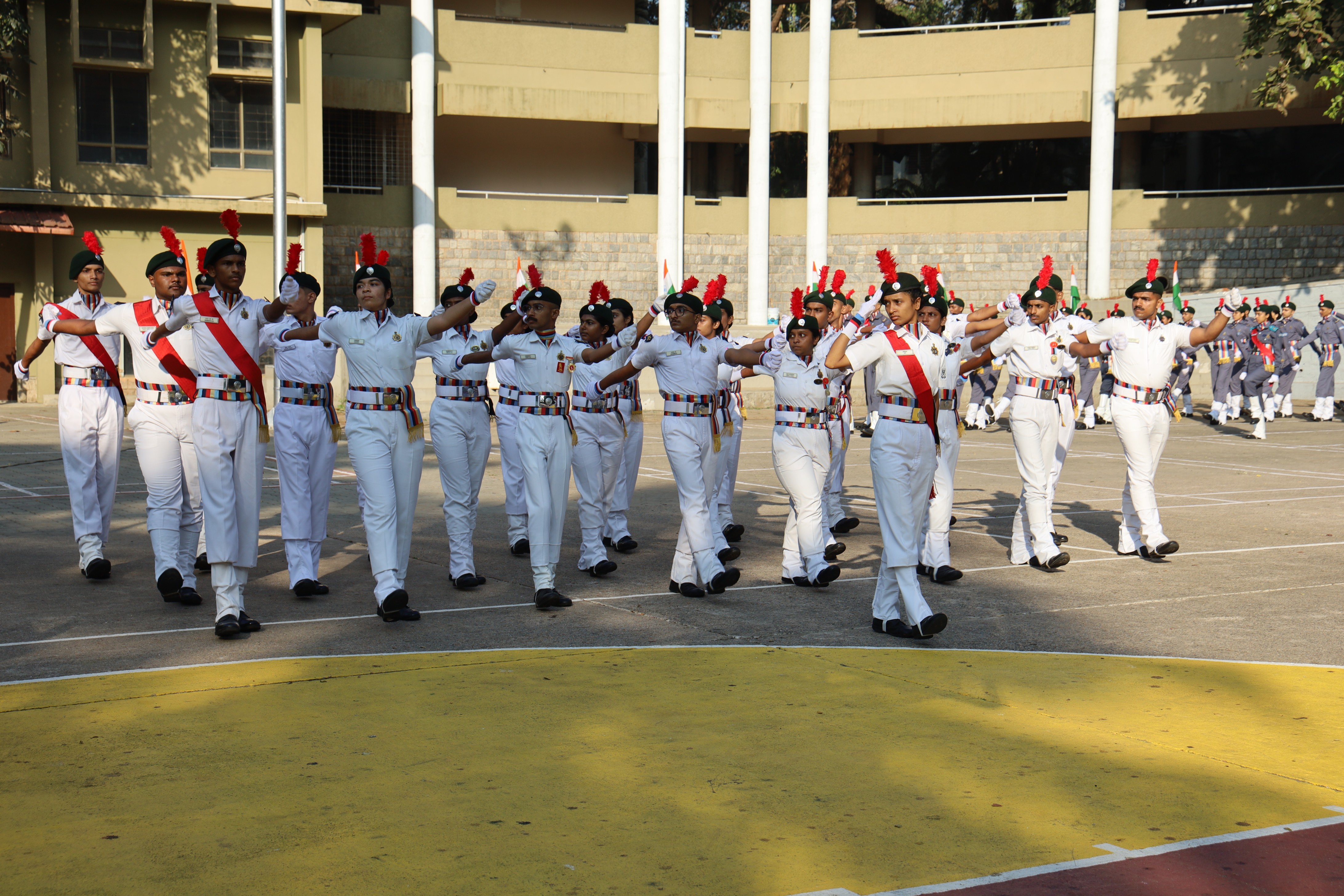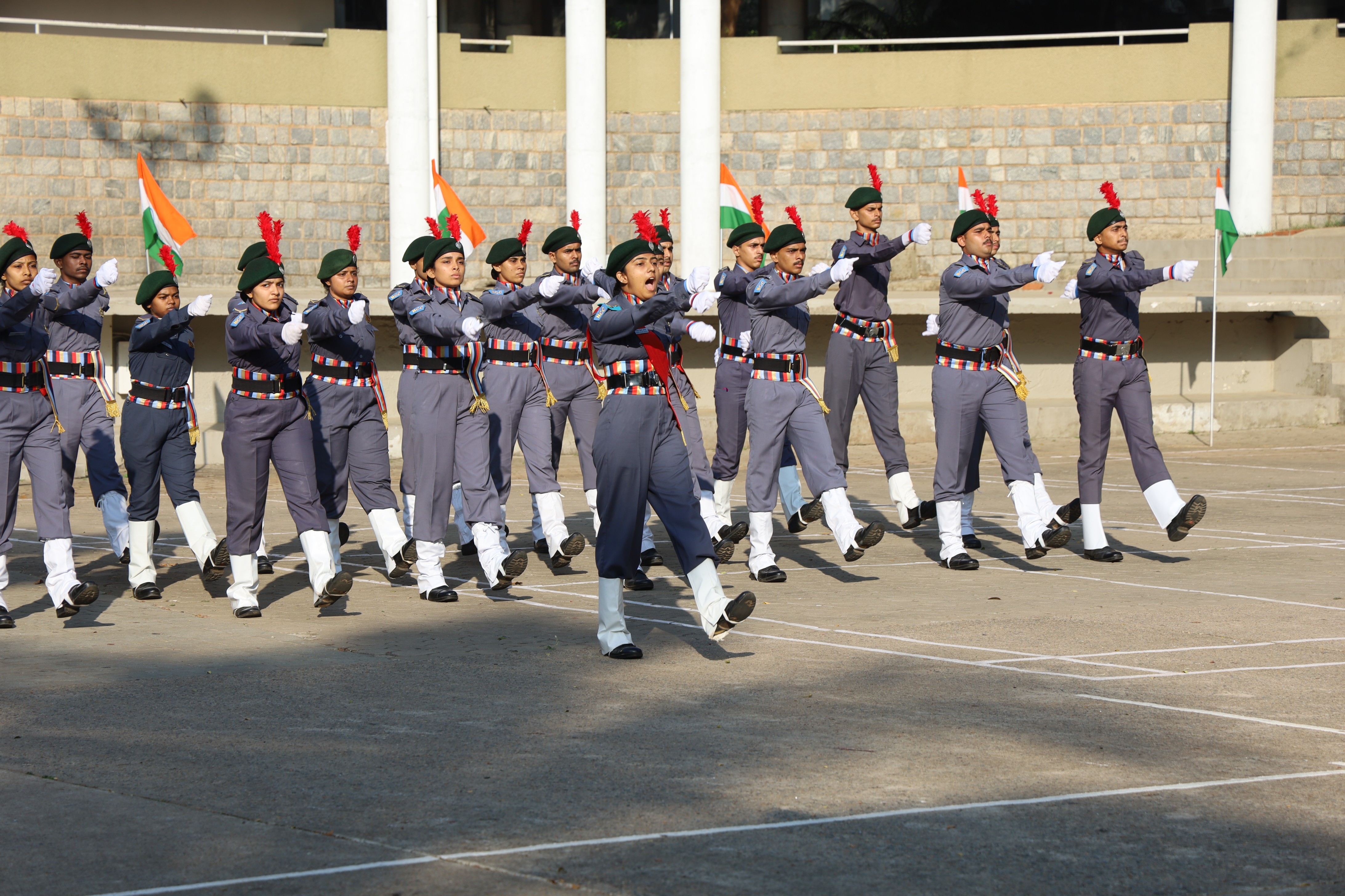 This year marked a significant milestone as the Army Wing was included in the parade for the first time, along with the SJEC Air Wing and SJEC Naval Wing. The dignitaries were escorted to the flag post by Leading CDT Ananya Y Dinne, CDT Madhura Keshav Gowda, CDT Dhrathika, and CDT Bhavana B.G.